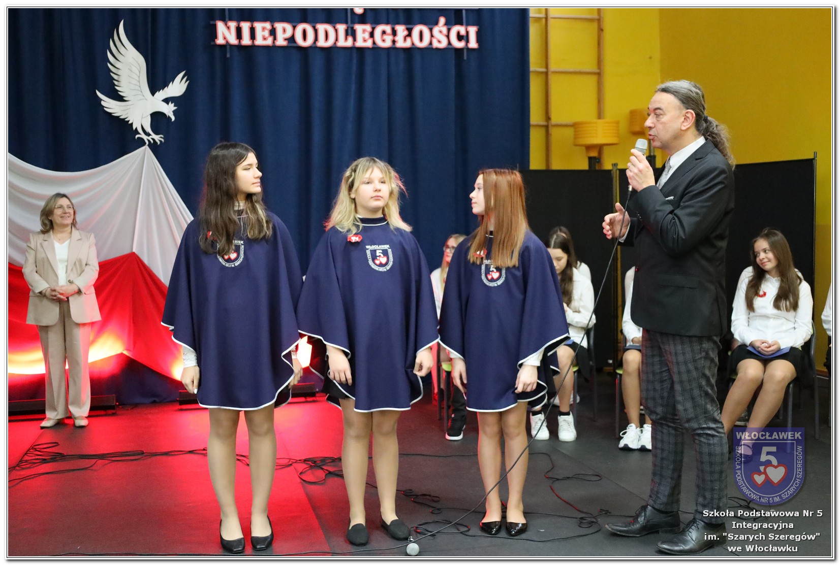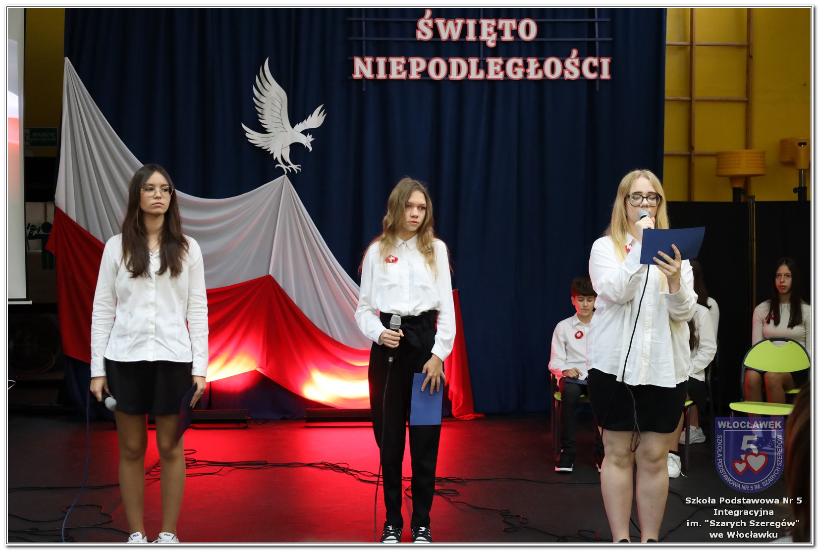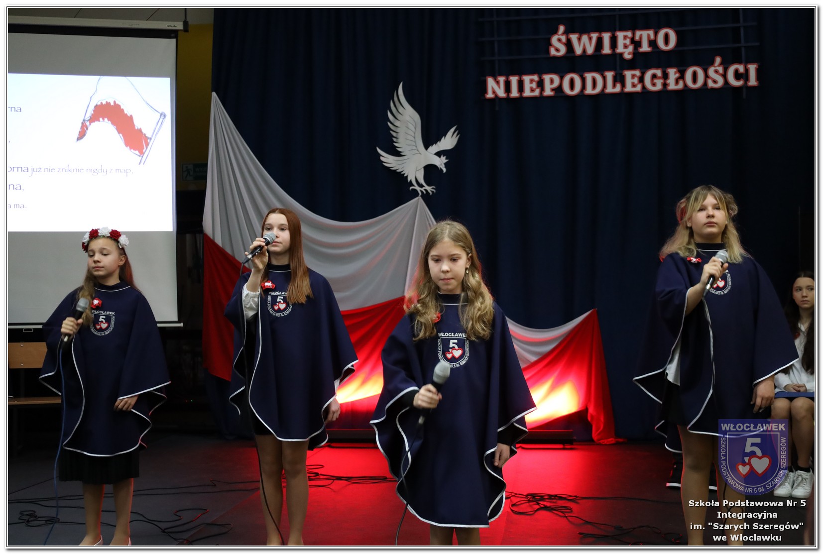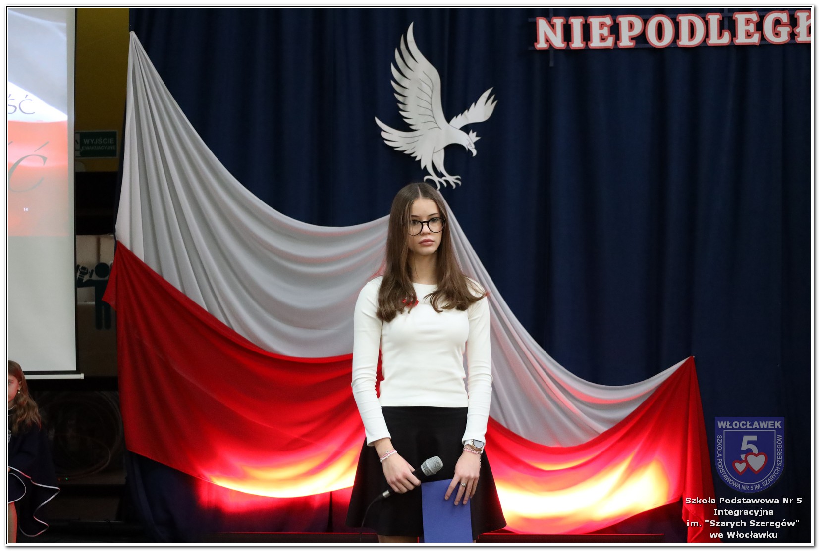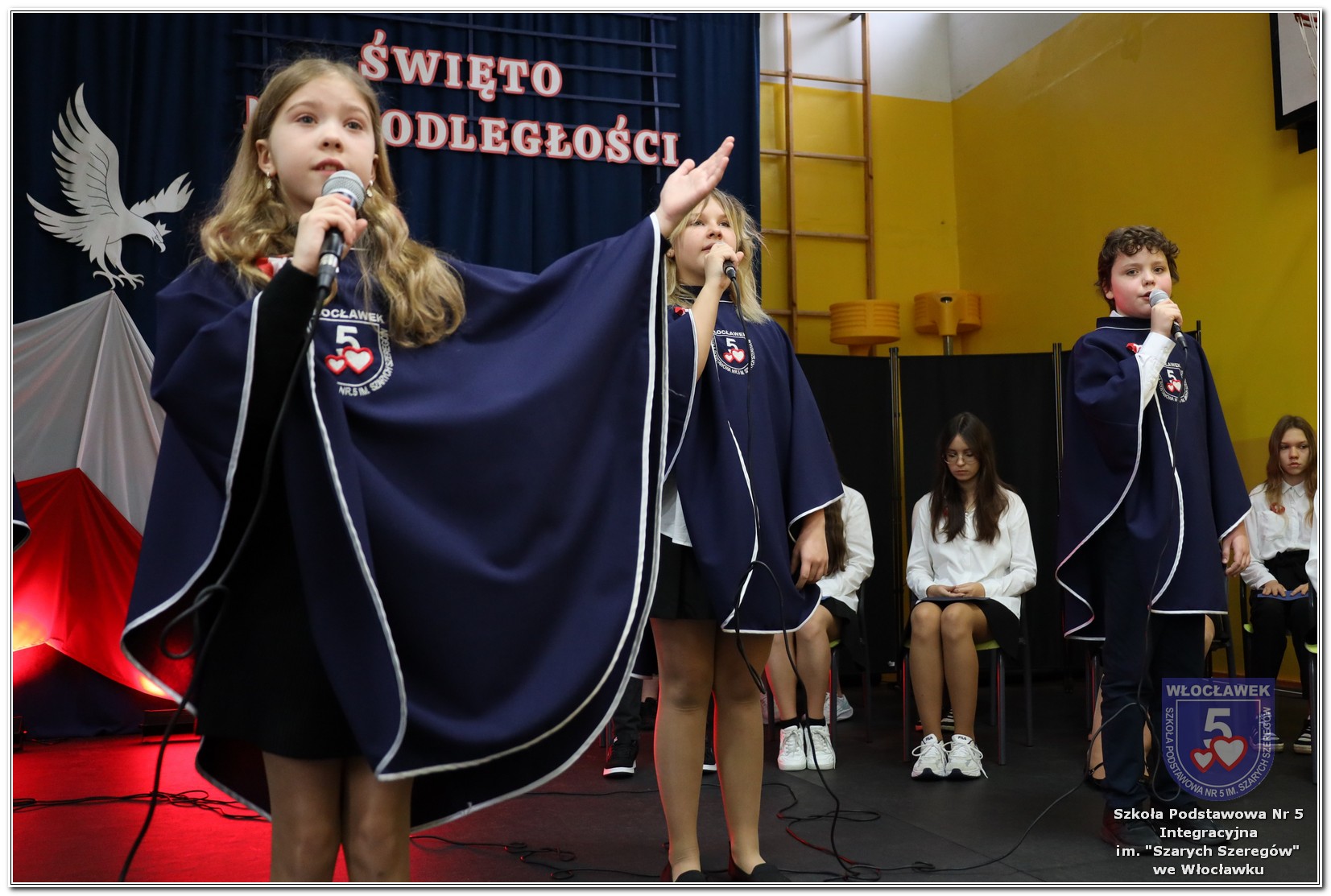 W dniu 7 listopada 2025 r. z okazji zbliżającej się 107. rocznicy odzyskania przez Polskę Niepodległości uczniowie naszej szkoły uczestniczyli w patriotycznej i bardzo wzruszającej akademii pt. "Przytulmy Polskę do serca". Była to przepiękna lekcja historii przygotowana przez uczniów klas IV-VIII pod kierunkiem Pani Doroty Bąbińskiej i Pana Wojciecha Hamkało. Nasi młodzi artyści przybliżyli widzom historię, soliści zaśpiewali piękne patriotyczne pieśni. Mieliśmy również okazję przenieść się na chwilę w czasie do wydarzeń z tamtych lat, o co zadbała Pani Maja Bugdał przygotowując z tej okazji bardzo ciekawą prezentację multimedialną. Na zakończenie obchodów Święta Niepodległość w naszej szkole o godz.11.11 wszyscy wspólnie odśpiewaliśmy hymn państwowy.