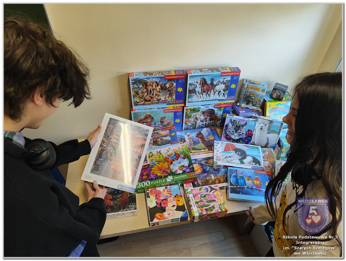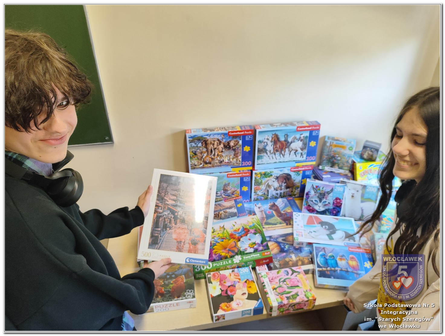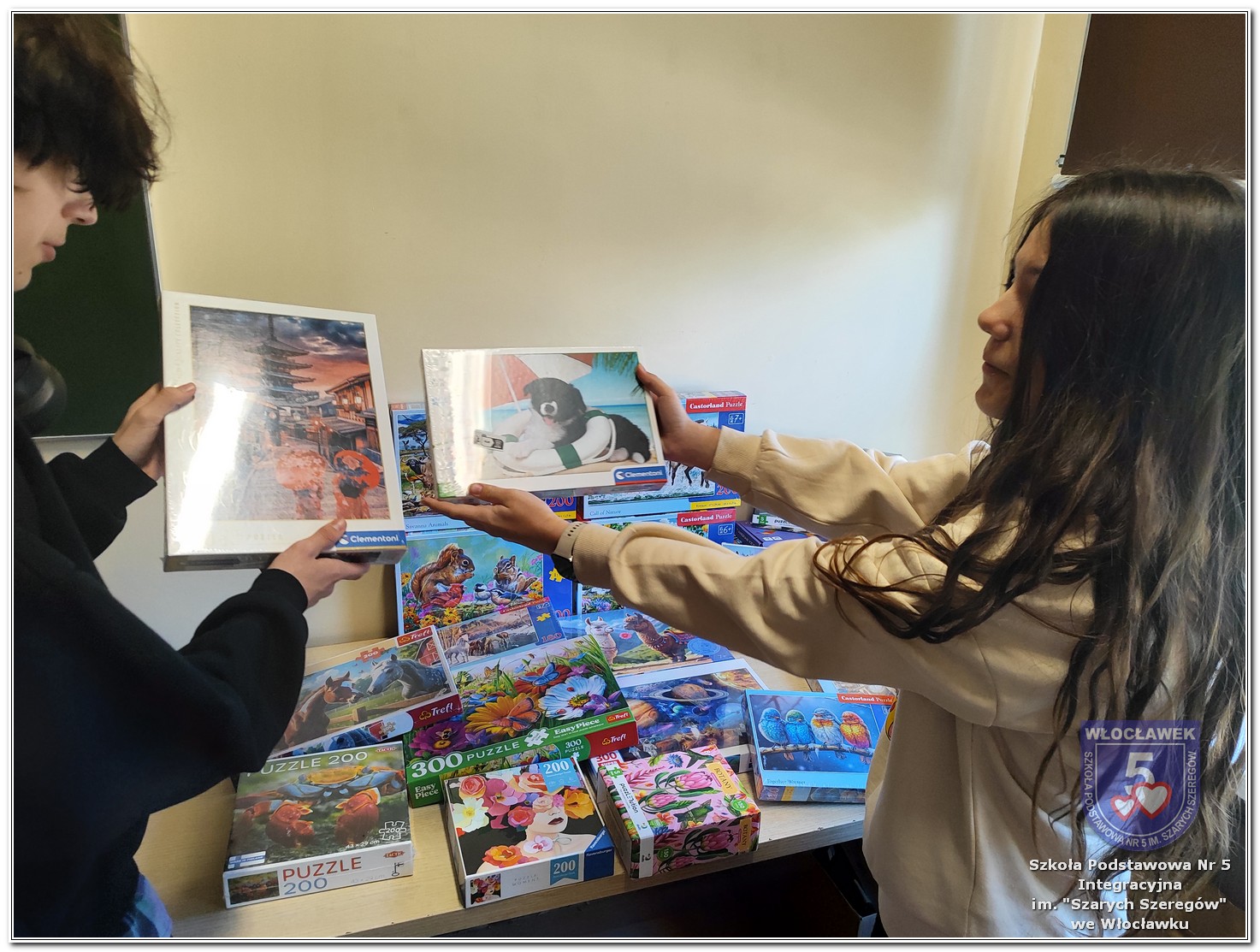 W ramach wspólnej inicjatywy Szkolnego Koła Wolontariatu „Razem SP5” oraz Samorządu Uczniowskiego w naszej szkole w dniach od 2 do 27 marca 2026 roku została przeprowadzona zbiórka puzzli przeznaczonych dla mieszkańców Domu Pomocy Społecznej przy ulicy Nowomiejskiej 19 we Włocławku. Akcja miała na celu wsparcie osób starszych poprzez dostarczenie im materiałów do aktywnego spędzania czasu oraz integracji. Zbiórka spotkała się z dużym zaangażowaniem uczniów, nauczycieli oraz rodziców. W jej trakcie udało się zebrać 23 zestawy puzzli o różnym stopniu trudności i tematyce. Dnia 31 marca 2026 roku opiekunowie Szkolnego Koła Wolontariatu „Razem SP5” oraz Samorządu Uczniowskiego udali się do Domu Pomocy Społecznej, gdzie oficjalnie przekazali zebrane dary. Podczas wizyty mieli okazję porozmawiać z mieszkańcami oraz pracownikami placówki, co było cennym doświadczeniem. Pracownicy Domu Pomocy Społecznej wyrazili wdzięczność za okazane wsparcie, podkreślając, że puzzle będą wykorzystywane podczas zajęć terapeutycznych oraz w czasie wolnym mieszkańców. Akcja była ważnym przedsięwzięciem, które nie tylko pomogło Seniorom, ale również uwrażliwiło uczniów na potrzeby innych oraz wzmocniło ducha współpracy i zaangażowania społecznego.