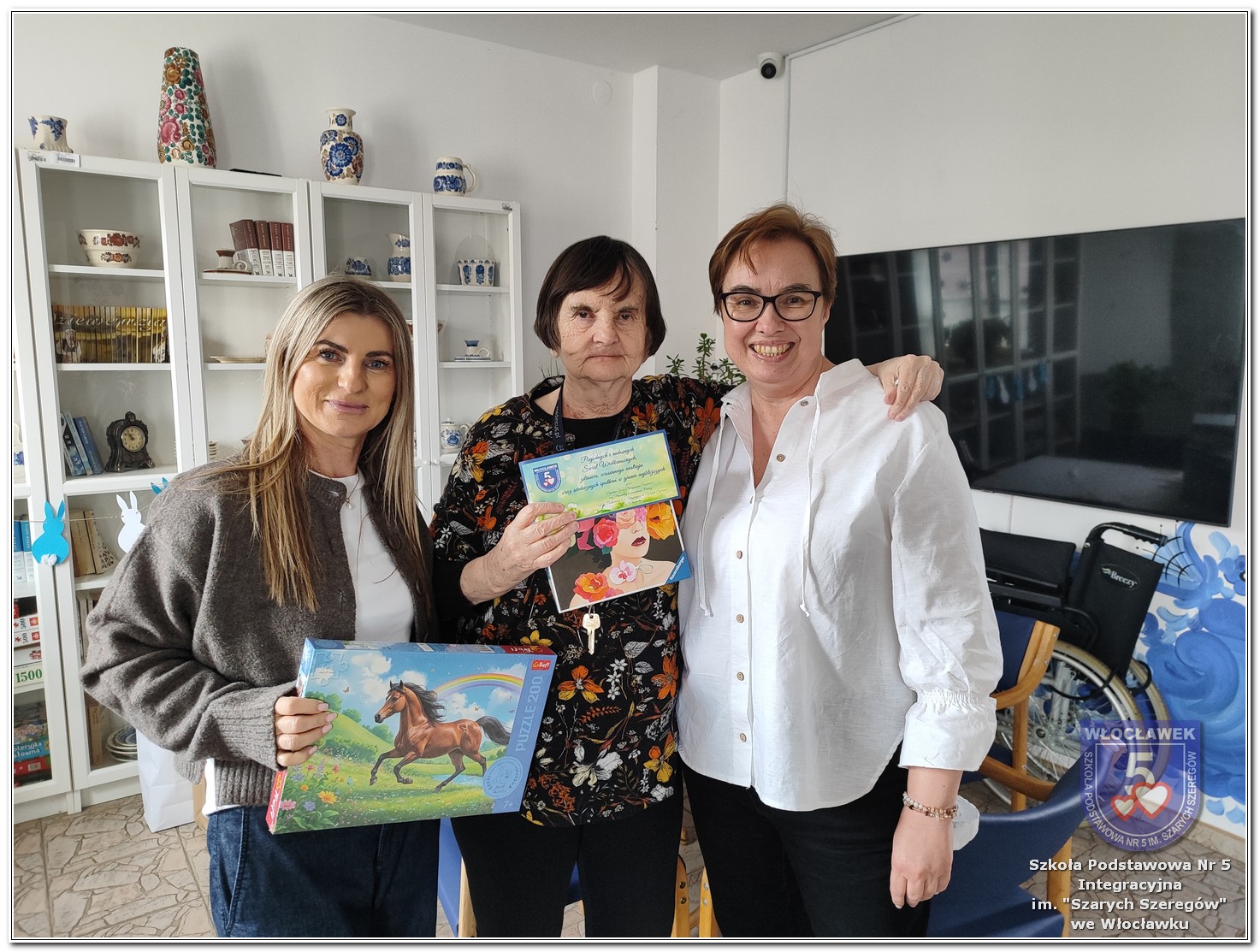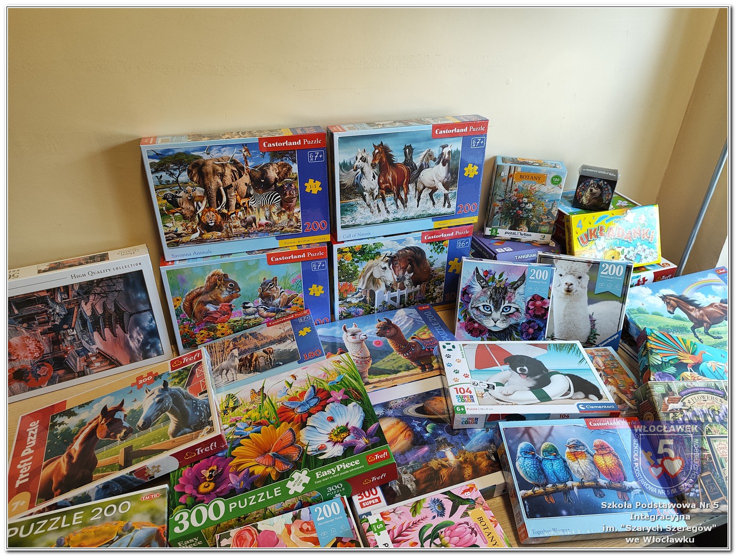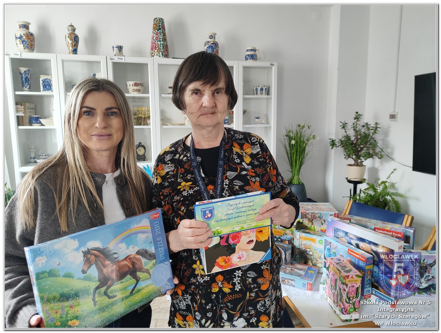 W ramach wspólnej inicjatywy Szkolnego Koła Wolontariatu „Razem SP5” oraz Samorządu Uczniowskiego w naszej szkole w dniach od 2 do 27 marca 2026 roku została przeprowadzona zbiórka puzzli przeznaczonych dla mieszkańców Domu Pomocy Społecznej przy ulicy Nowomiejskiej 19 we Włocławku. Akcja miała na celu wsparcie osób starszych poprzez dostarczenie im materiałów do aktywnego spędzania czasu oraz integracji. Zbiórka spotkała się z dużym zaangażowaniem uczniów, nauczycieli oraz rodziców. W jej trakcie udało się zebrać 23 zestawy puzzli o różnym stopniu trudności i tematyce. Dnia 31 marca 2026 roku opiekunowie Szkolnego Koła Wolontariatu „Razem SP5” oraz Samorządu Uczniowskiego udali się do Domu Pomocy Społecznej, gdzie oficjalnie przekazali zebrane dary. Podczas wizyty mieli okazję porozmawiać z mieszkańcami oraz pracownikami placówki, co było cennym doświadczeniem. Pracownicy Domu Pomocy Społecznej wyrazili wdzięczność za okazane wsparcie, podkreślając, że puzzle będą wykorzystywane podczas zajęć terapeutycznych oraz w czasie wolnym mieszkańców. Akcja była ważnym przedsięwzięciem, które nie tylko pomogło Seniorom, ale również uwrażliwiło uczniów na potrzeby innych oraz wzmocniło ducha współpracy i zaangażowania społecznego.