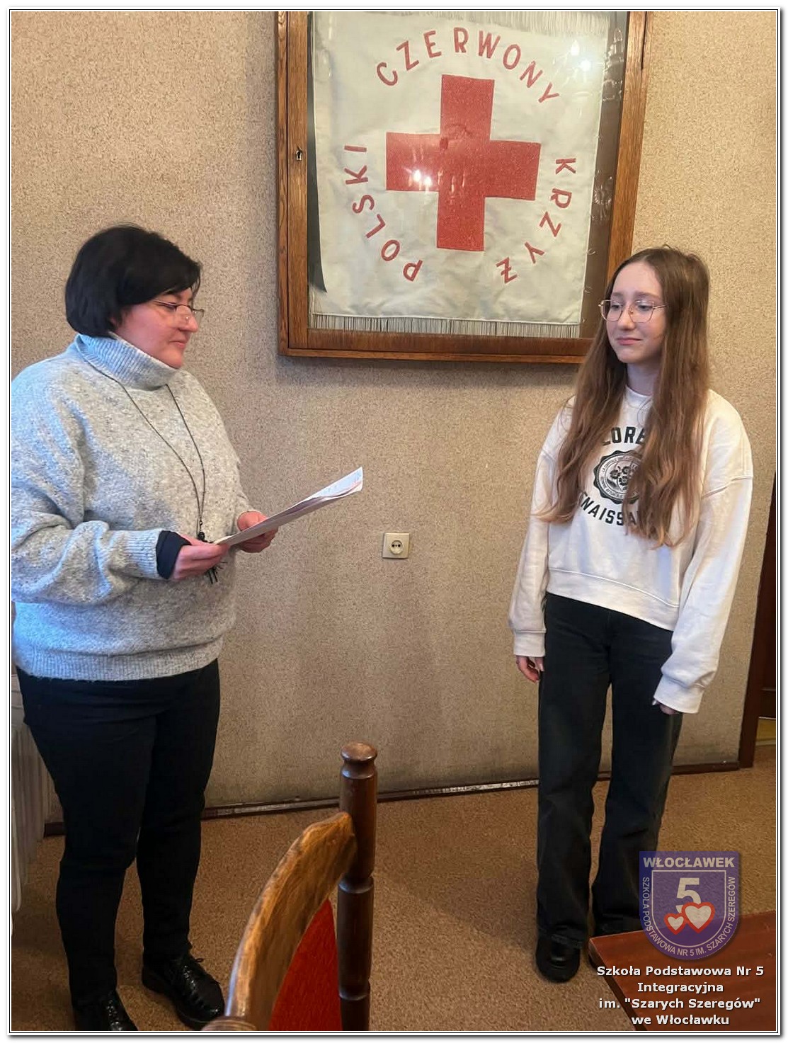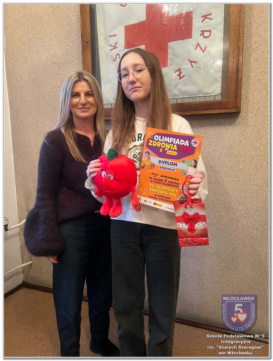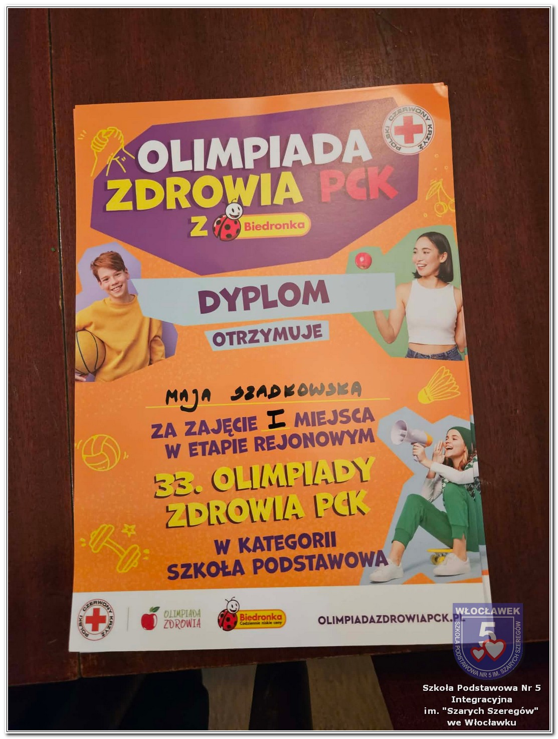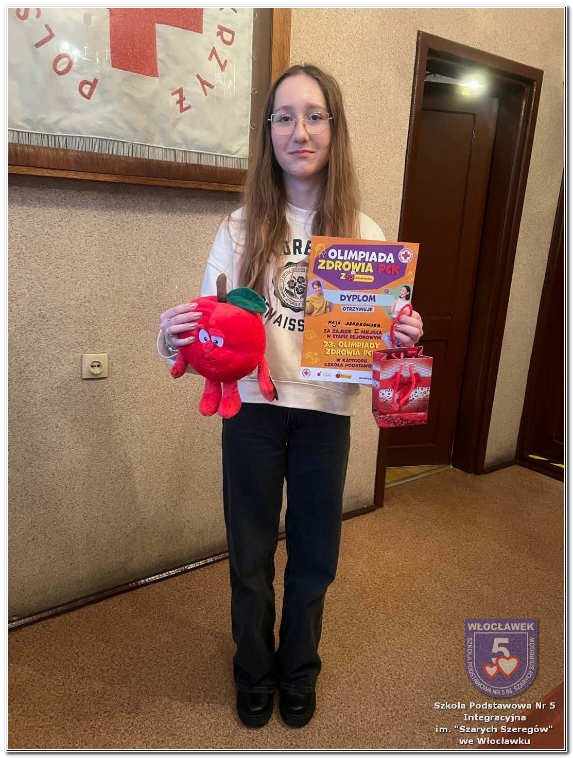 Z ogromną dumą informujemy, że Maja Szadkowska – uczennica klasy 8b zdobyła I miejsce podczas konkursu rejonowego 33. Olimpiady Zdrowia PCK z Biedronką, który odbył się 14 stycznia 2026 r. Olimpiada Zdrowia PCK jest ogólnopolskim konkursem promującym wśród młodzieży wiedzę o zdrowiu, zdrowym stylu życia oraz postawy prospołeczne. W etapie rejonowym uczestnicy rozwiązywali test składający się z 40 pytań, obejmujących m.in.: zdrowe odżywianie i aktywność fizyczną, profilaktykę zdrowia fizycznego i psychicznego, ekologię i ochronę środowiska, zasady działania Polskiego Czerwonego Krzyża i podstawy działań humanitarnych. Udział w Olimpiadzie to nie tylko rywalizacja, ale przede wszystkim rozwijanie świadomości zdrowotnej, odpowiedzialności społecznej i umiejętności świadomego podejmowania decyzji. Gratulujemy Mai i dziękujemy za zaangażowanie w promowanie wartości bliskich Polskiemu Czerwonemu Krzyżowi! Trzymamy kciuki podczas etapu okręgowego w Bydgoszczy i życzymy dalszych sukcesów! Dziękujemy Pani Annie Drzewieckiej-Olszewskiej, pod której kierunkiem Maja przygotowywała się do udziału w Olimpiadzie.