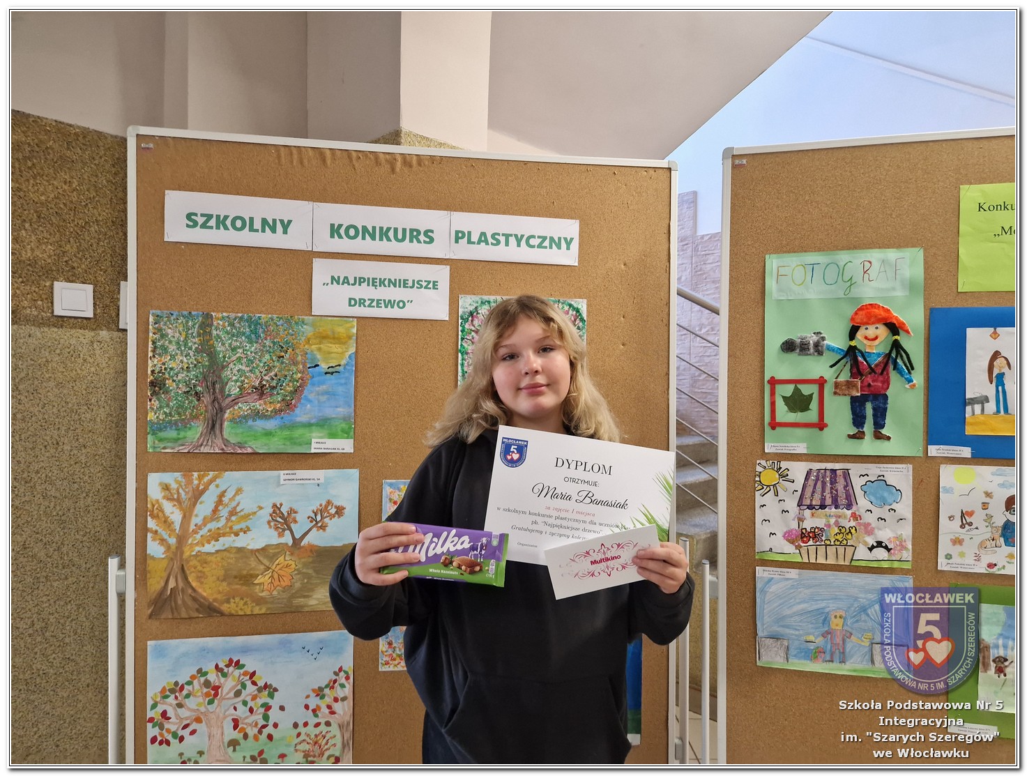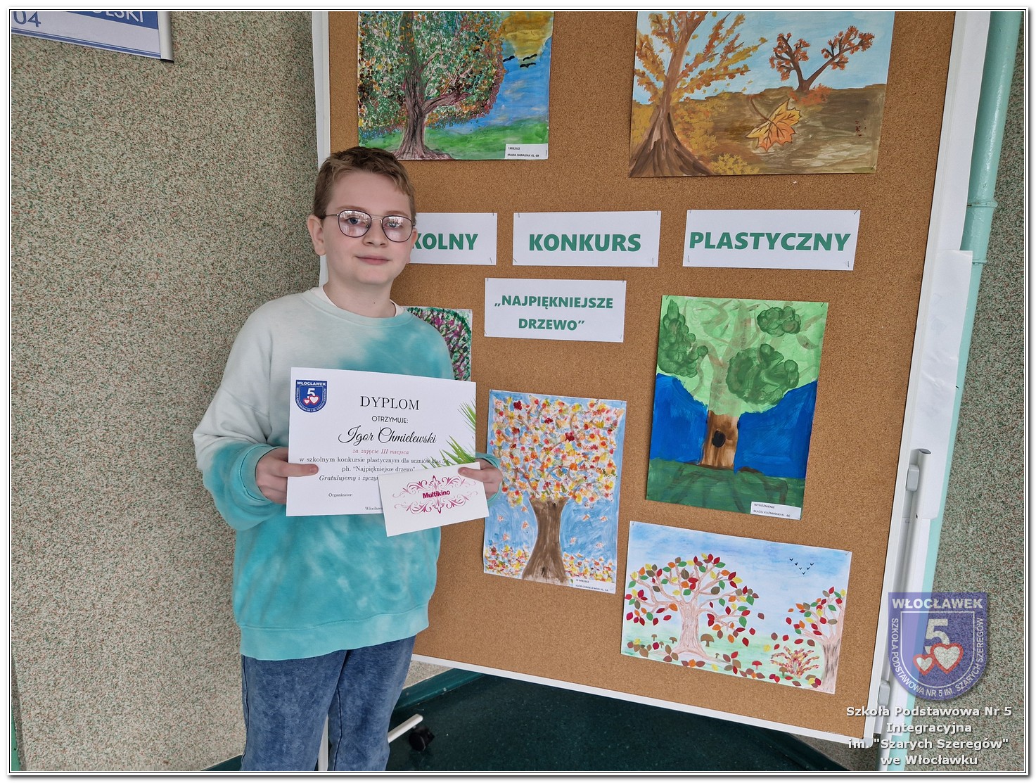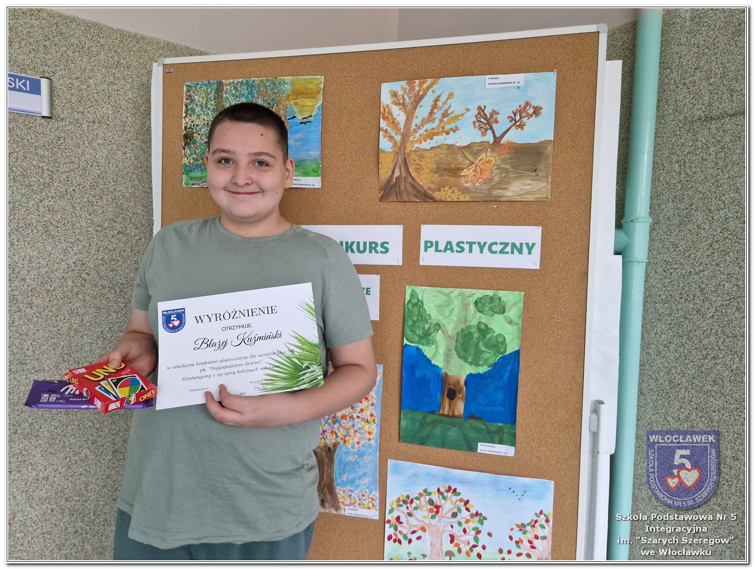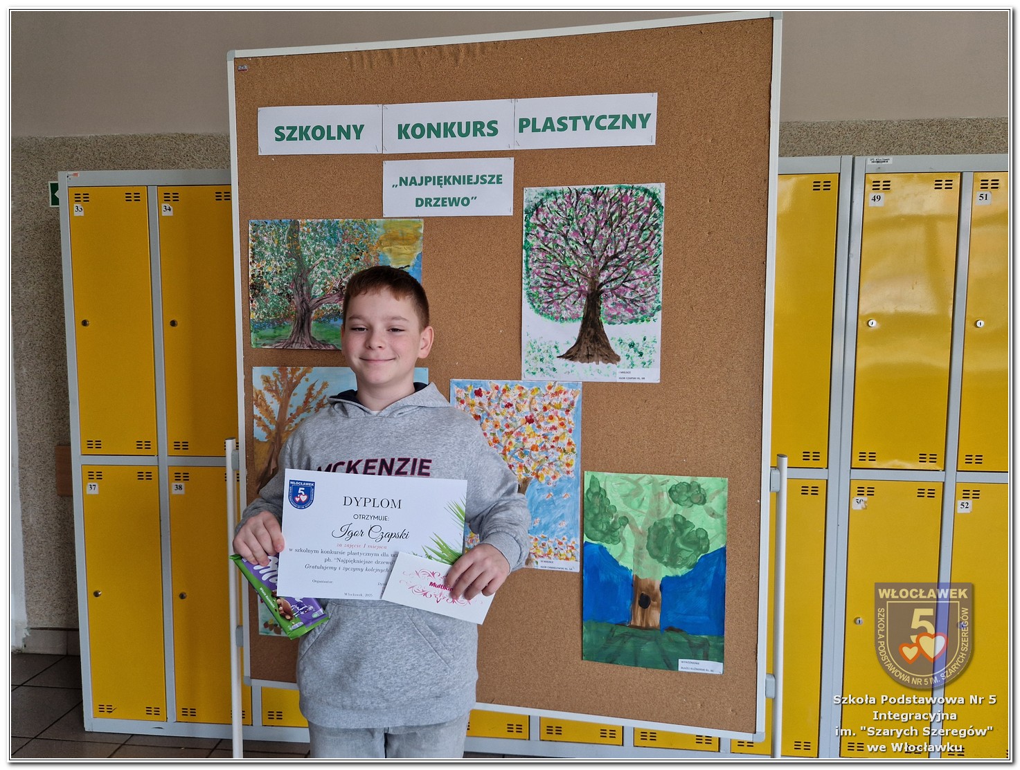 Miło nam poinformować, że został rozstrzygnięty szkolny konkurs plastyczny dla uczniów klas 5-6 naszej szkoły ph. „Najpiękniejsze drzewo”. Celem konkursu było propagowanie wśród dzieci i młodzieży zainteresowania i szacunku dla przyrody, rozwijanie umiejętności plastycznych i kreatywności, pobudzanie inwencji twórczej i wyobraźni, także rozwijanie u uczniów umiejętności wyrażania własnych spostrzeżeń i obserwacji. Nagrodzeni w konkursie: