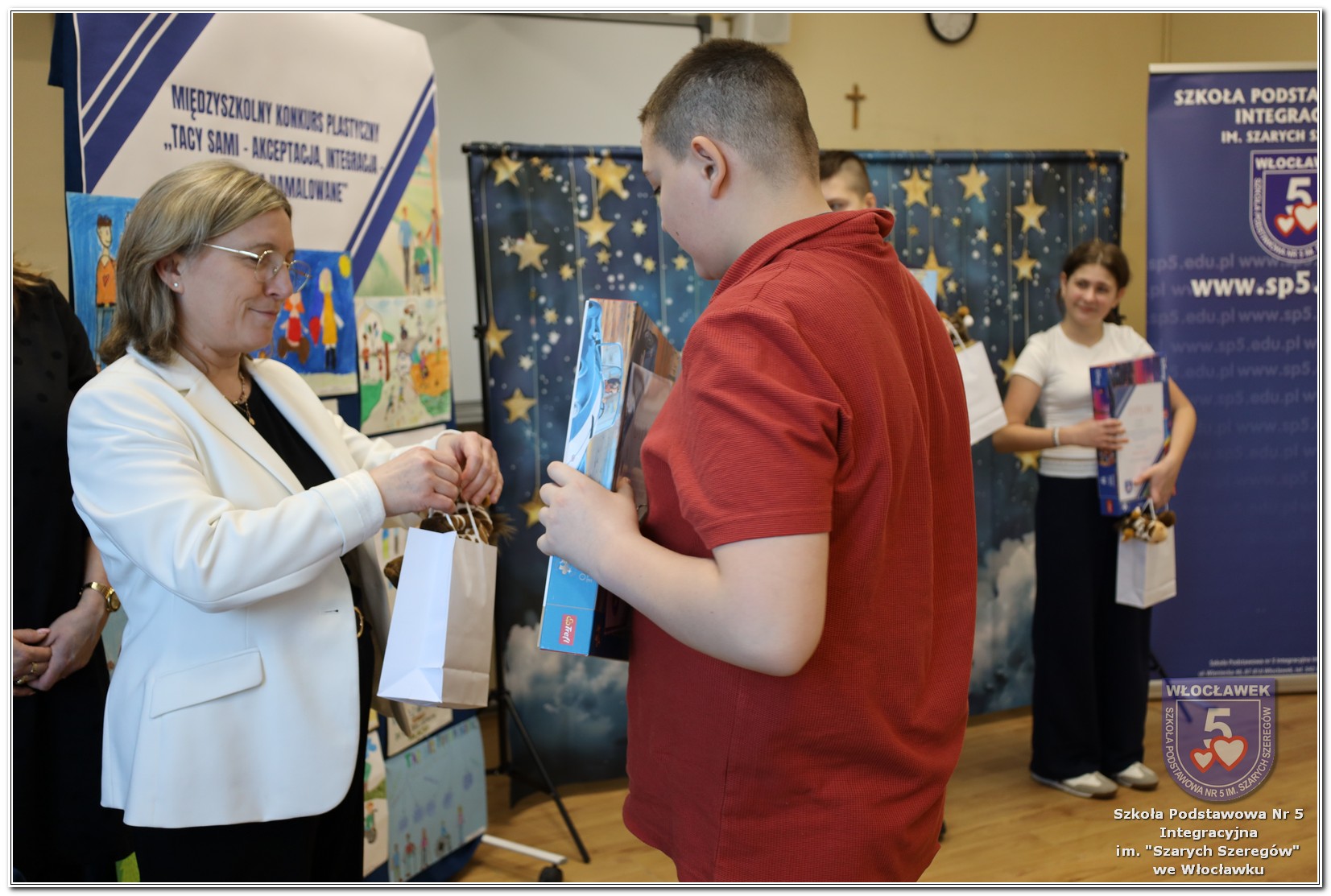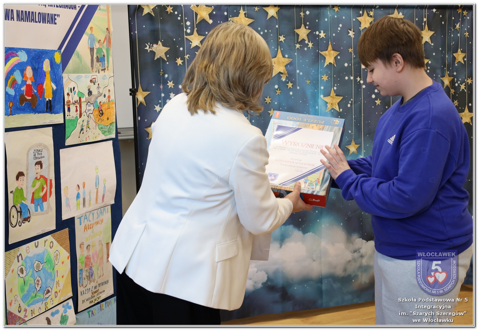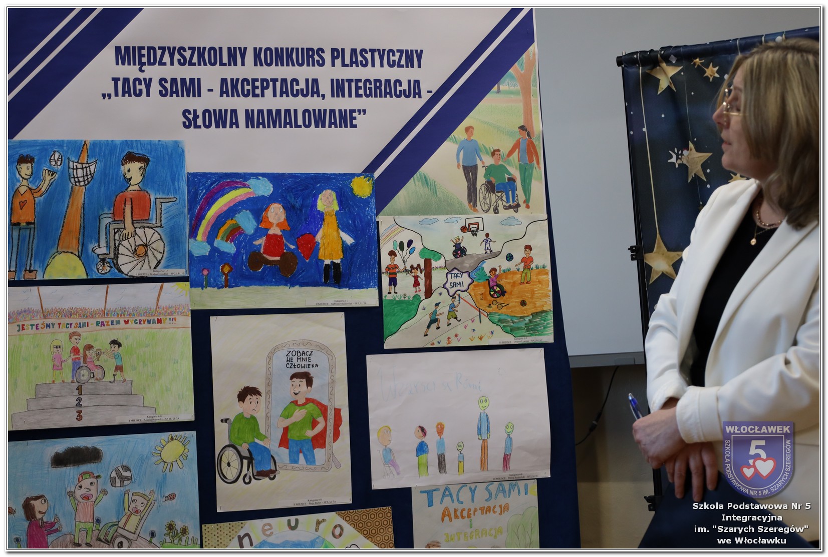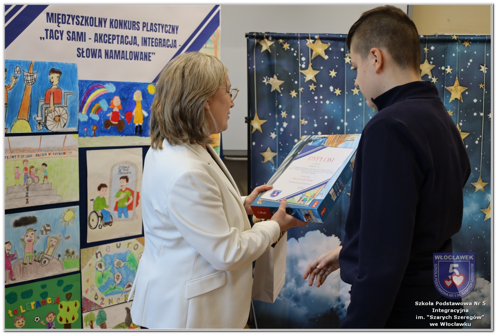 W dniu 19.01.2026 odbyło się uroczyste podsumowanie oraz wręczenie nagród w konkursie plastycznym „Tacy sami – akceptacja, integracja – słowa namalowane”, zorganizowanym z okazji Międzynarodowego Dnia Osób z Niepełnosprawnościami. Wydarzenie miało na celu promowanie postaw otwartości, empatii i wzajemnego szacunku, a także zachęcenie uczniów do twórczego wyrażania idei integracji. W konkursie wzięli udział uczniowie z różnych szkół, prezentując prace wykonane w wielu technikach plastycznych.
