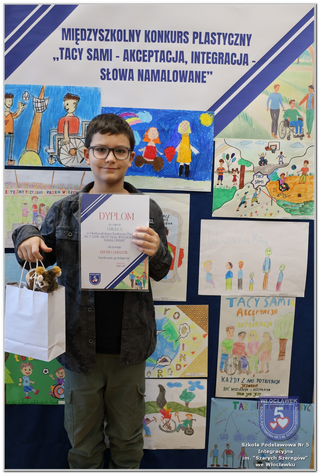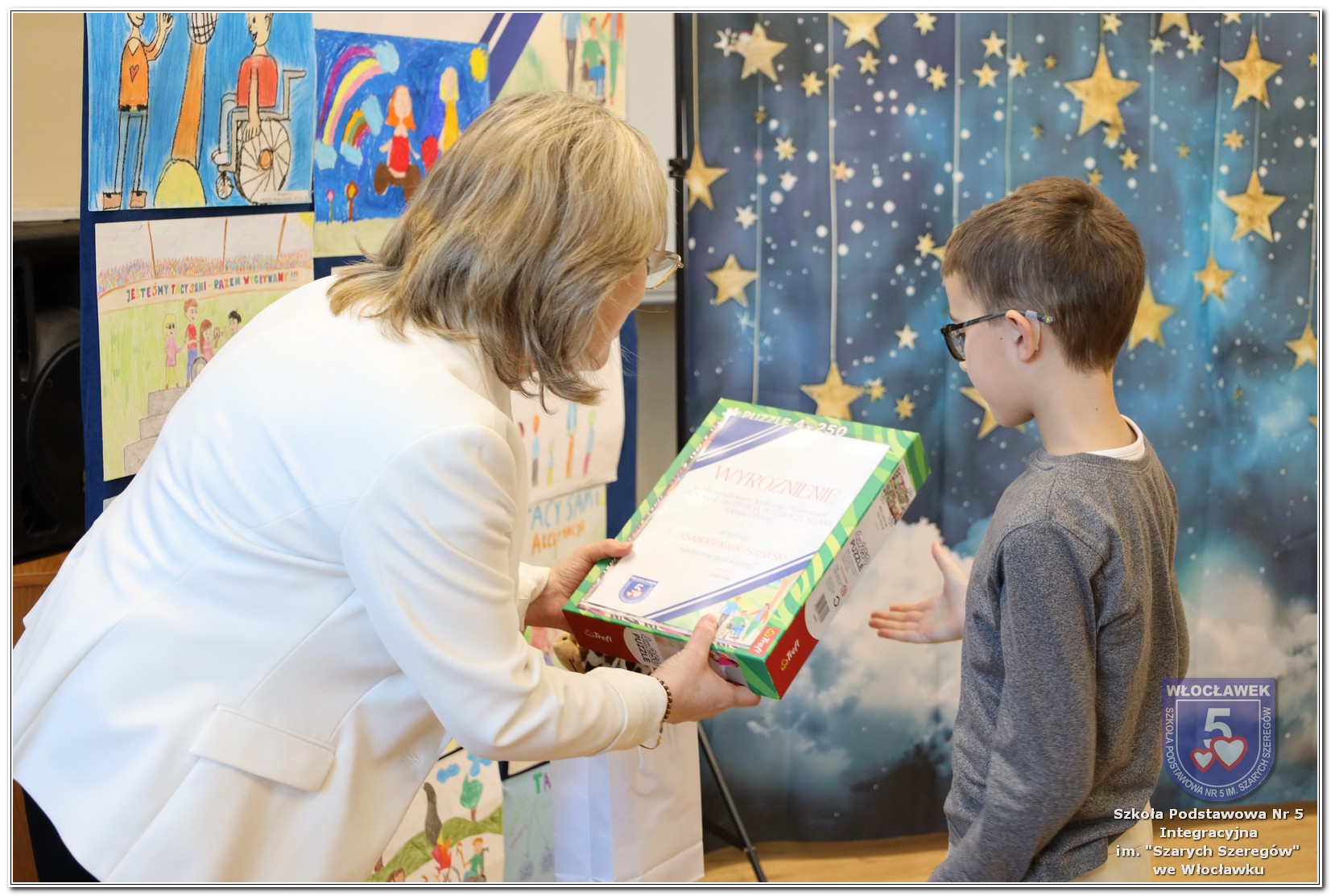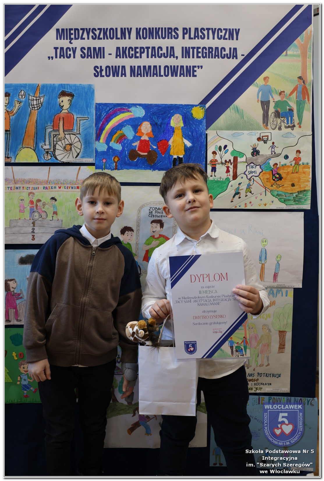 W dniu 19.01.2026 odbyło się uroczyste podsumowanie oraz wręczenie nagród w konkursie plastycznym „Tacy sami – akceptacja, integracja – słowa namalowane”, zorganizowanym z okazji Międzynarodowego Dnia Osób z Niepełnosprawnościami. Wydarzenie miało na celu promowanie postaw otwartości, empatii i wzajemnego szacunku, a także zachęcenie uczniów do twórczego wyrażania idei integracji. W konkursie wzięli udział uczniowie z różnych szkół, prezentując prace wykonane w wielu technikach plastycznych.