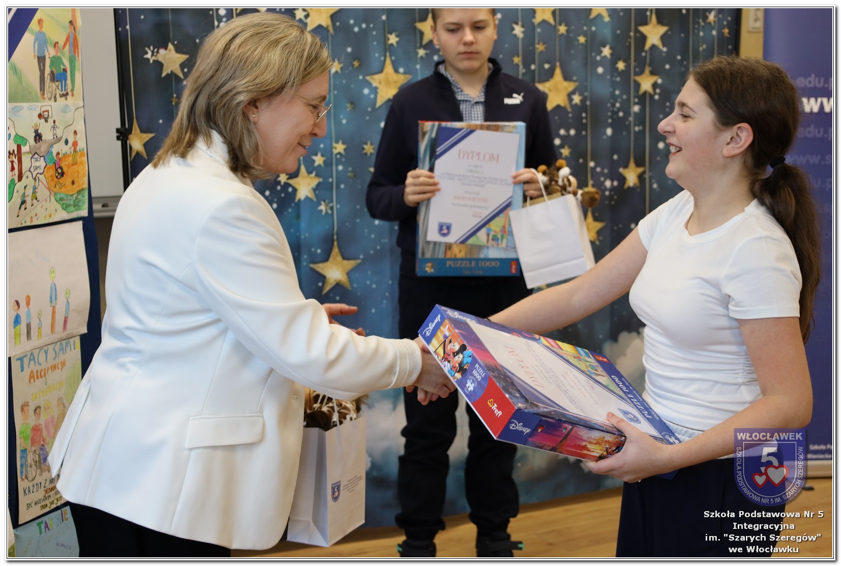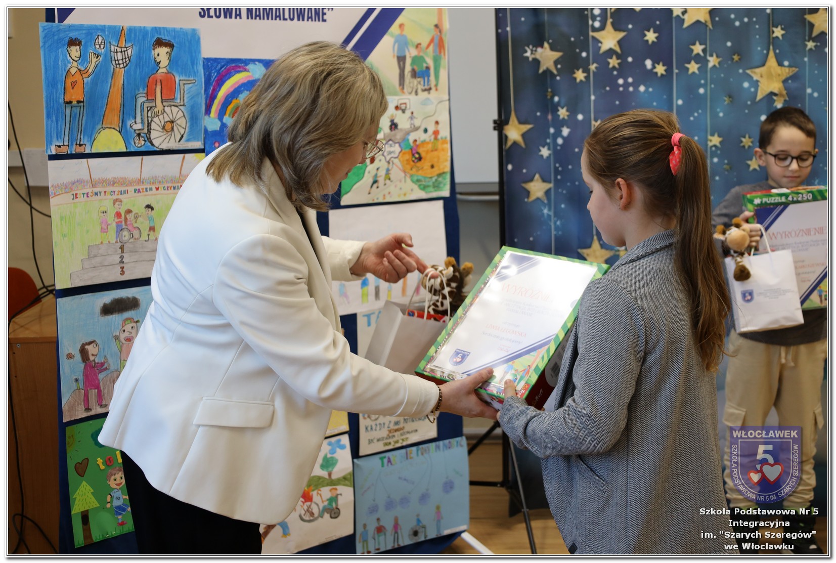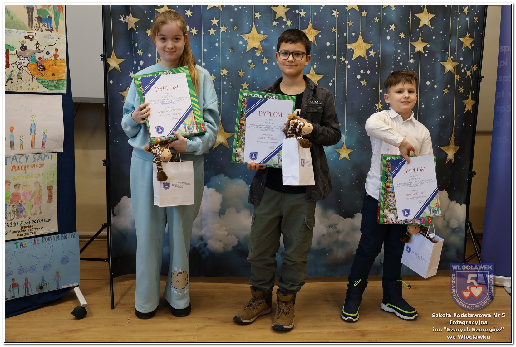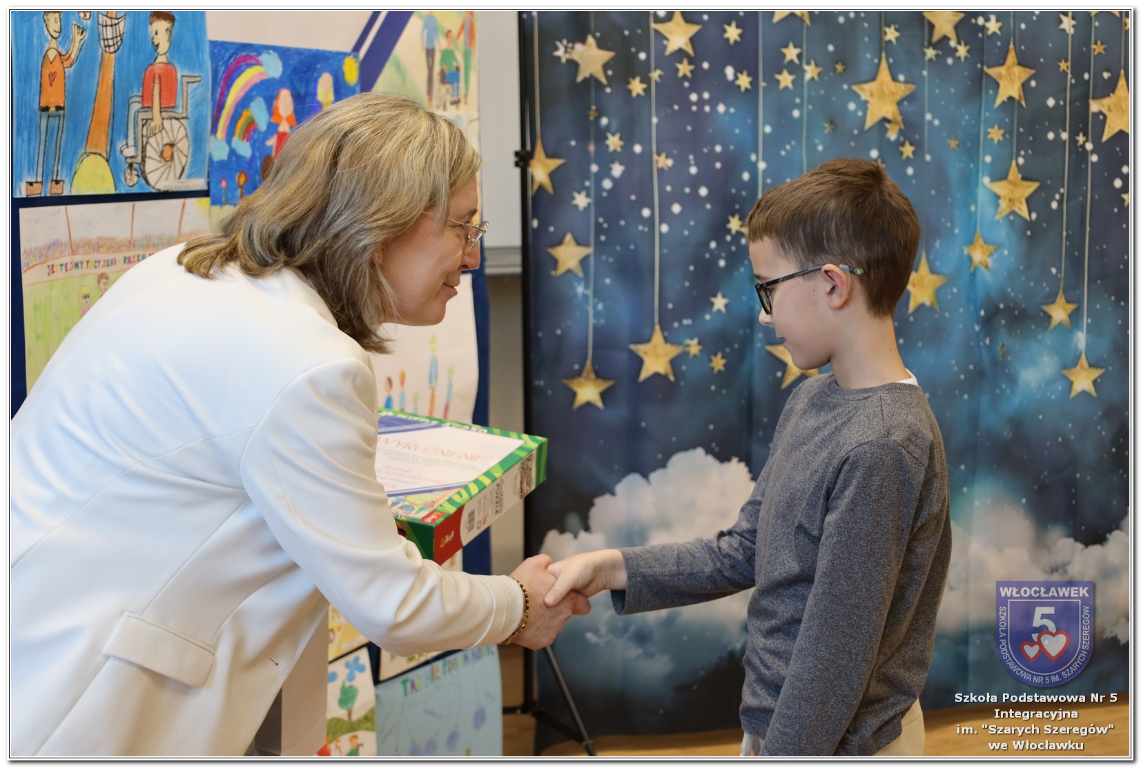 W dniu 19.01.2026 odbyło się uroczyste podsumowanie oraz wręczenie nagród w konkursie plastycznym „Tacy sami – akceptacja, integracja – słowa namalowane”, zorganizowanym z okazji Międzynarodowego Dnia Osób z Niepełnosprawnościami. Wydarzenie miało na celu promowanie postaw otwartości, empatii i wzajemnego szacunku, a także zachęcenie uczniów do twórczego wyrażania idei integracji. W konkursie wzięli udział uczniowie z różnych szkół, prezentując prace wykonane w wielu technikach plastycznych.