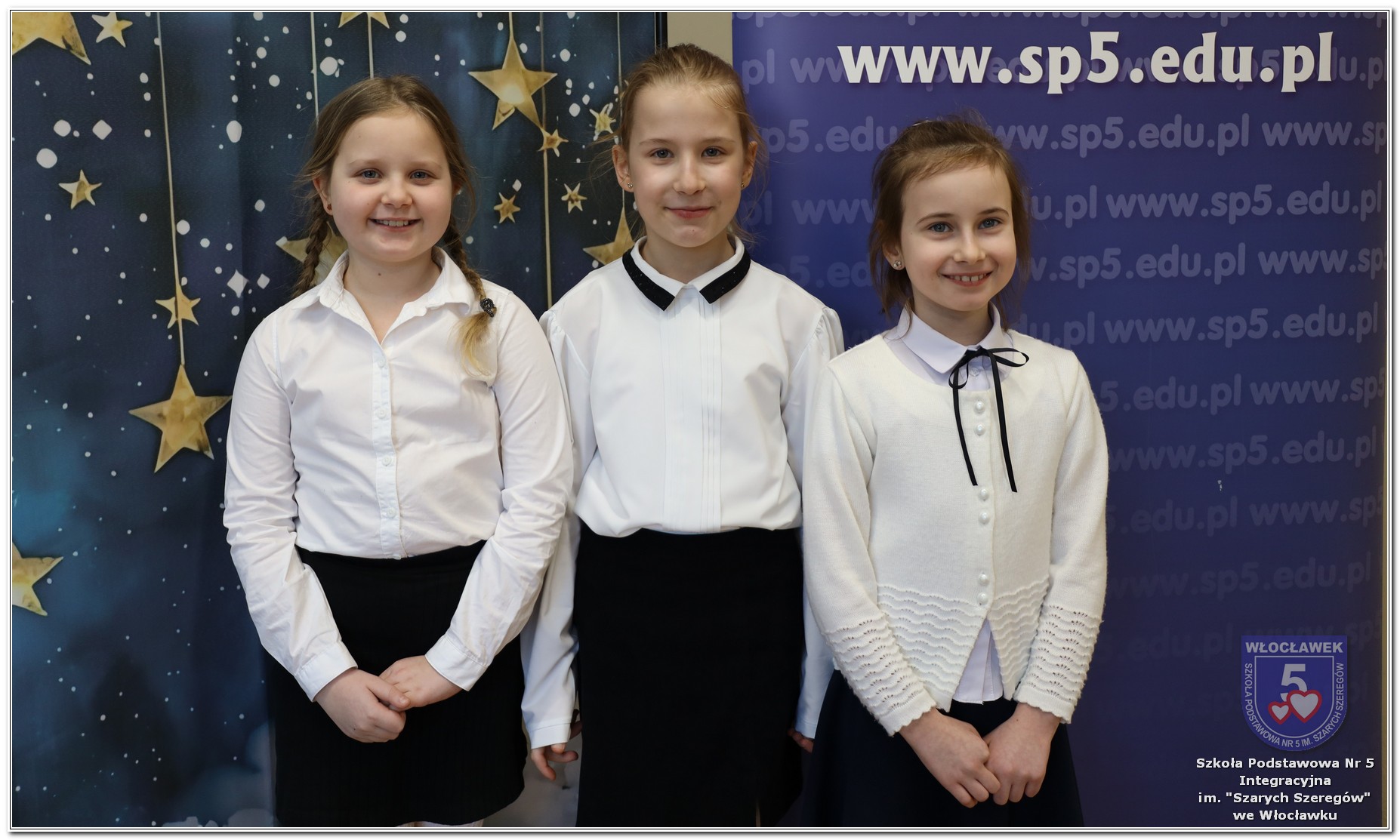 Wyrazy uznania należą się również uczennicom: Natalii Piaseckiej z kl. 2a, Małgorzacie Śnieżewskiej z kl. 3a oraz Gabrieli Wasilewskiej z kl. 3b, które uświetniły uroczystość krótkim, pięknym występem artystycznym. Dziękujemy!