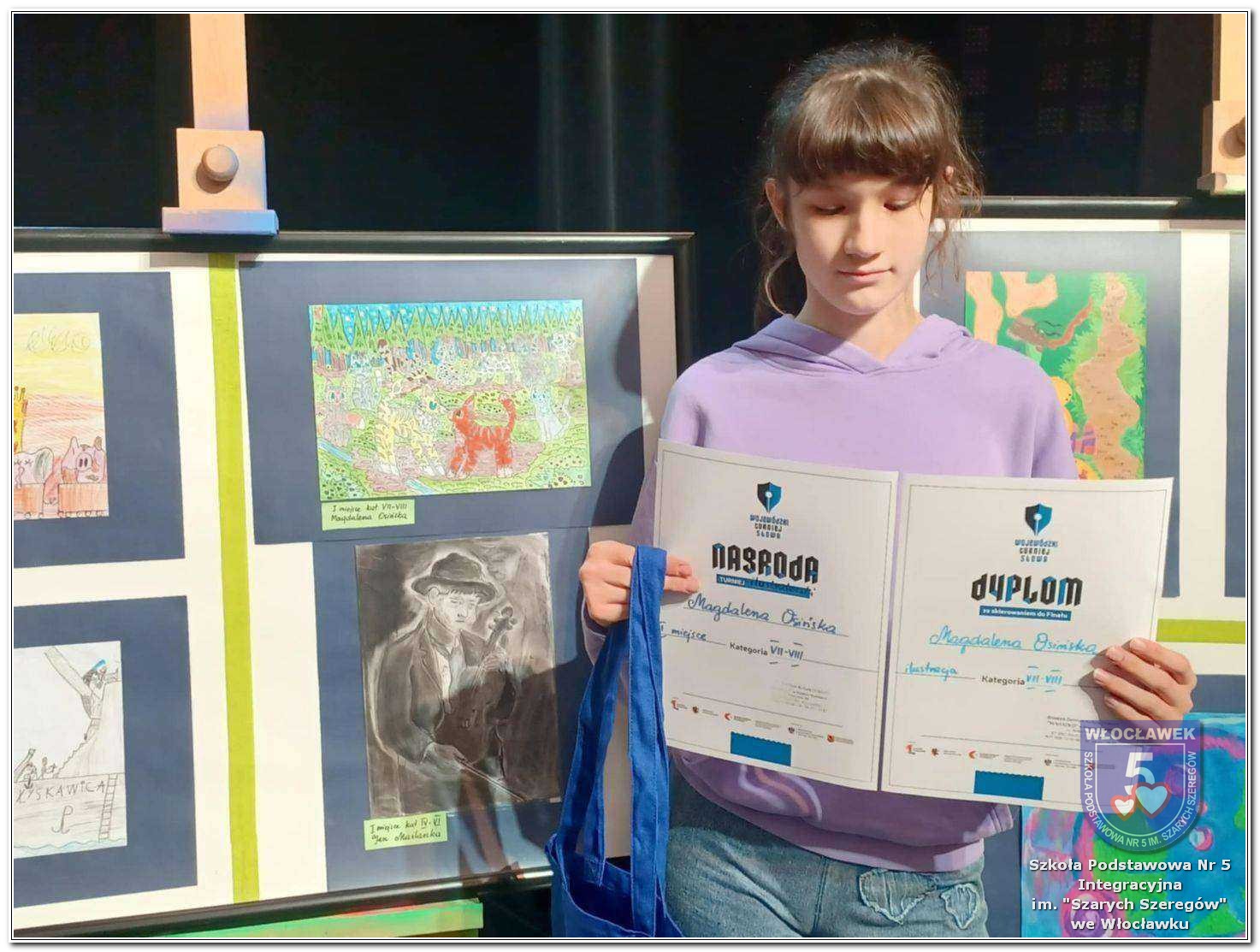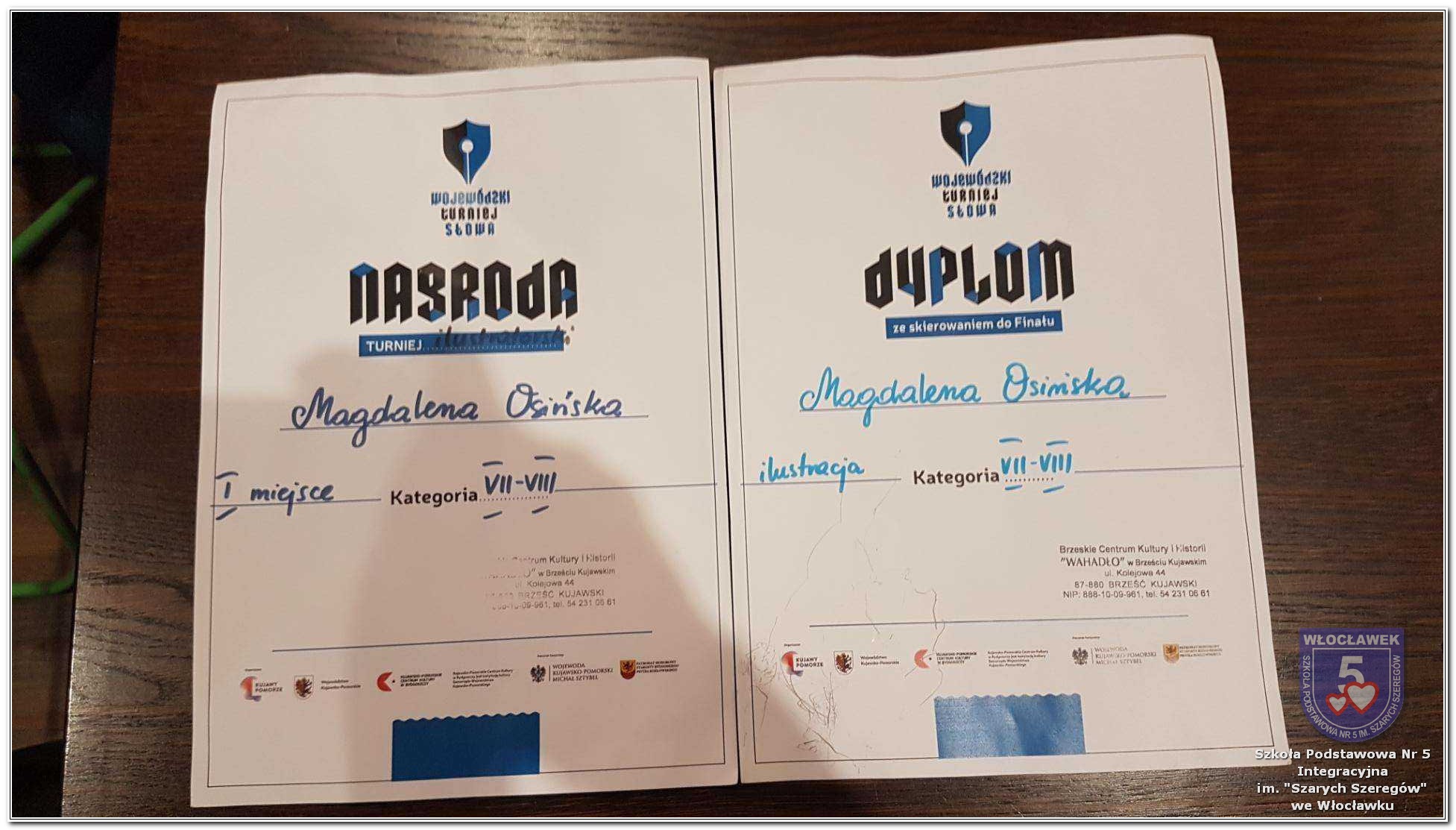 W dniu 4 listopada 2025 r. w Brzeskim Centrum Kultury i Historii „Wahadło” odbyły się eliminacje wstępne do Turnieju Słowa 2025 „DZIECI MAJĄ GŁOS”, którego głównym organizatorem jest Kujawsko-Pomorskie Centrum Kultury w Bydgoszczy. Miło nam poinformować, że uczniowie naszej szkoły zostali laureatami w konkursie ilustratorskim. W kategorii wiekowej IV-VI trzecie miejsce zajęła Anna Chodulska z klasy 4b, natomiast wyróżnienie otrzymał Błażej Kuźmiński z klasy 6c. W kategorii VII-VIII pierwsze miejsce otrzymała Magdalena Osińska z klasy 7c, której praca została zakwalifikowana do finału i będzie brała udział w etapie wojewódzkim konkursu w Bydgoszczy. Do konkursu prace naszych uczniów zgłosiła Pani Lidia Kania – nauczyciel plastyki. Serdecznie dziękujemy wszystkim uczestnikom konkursu za zaangażowanie, pasję tworzenia i wyjątkowy talent.