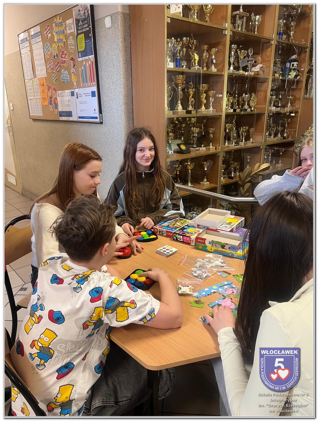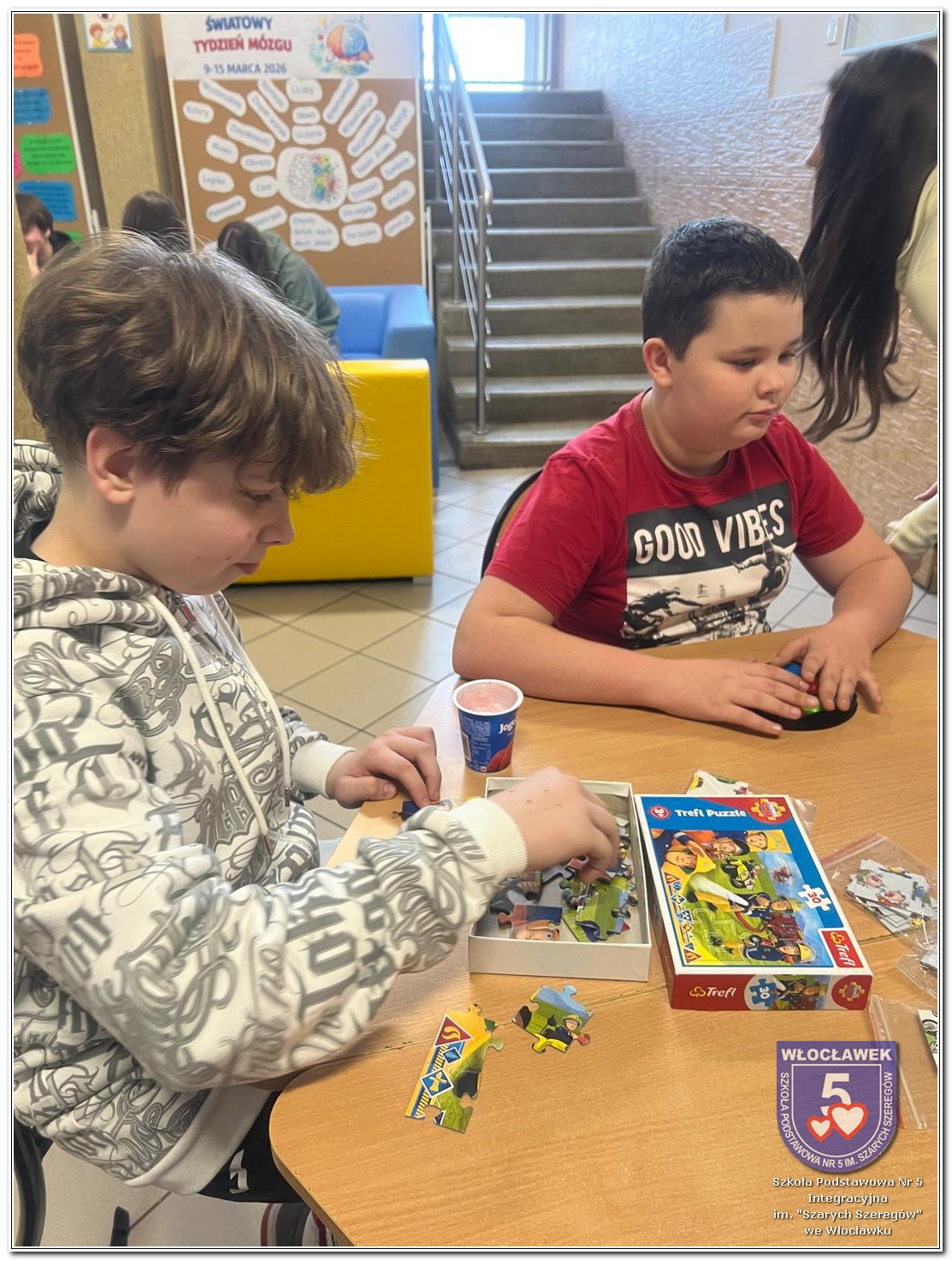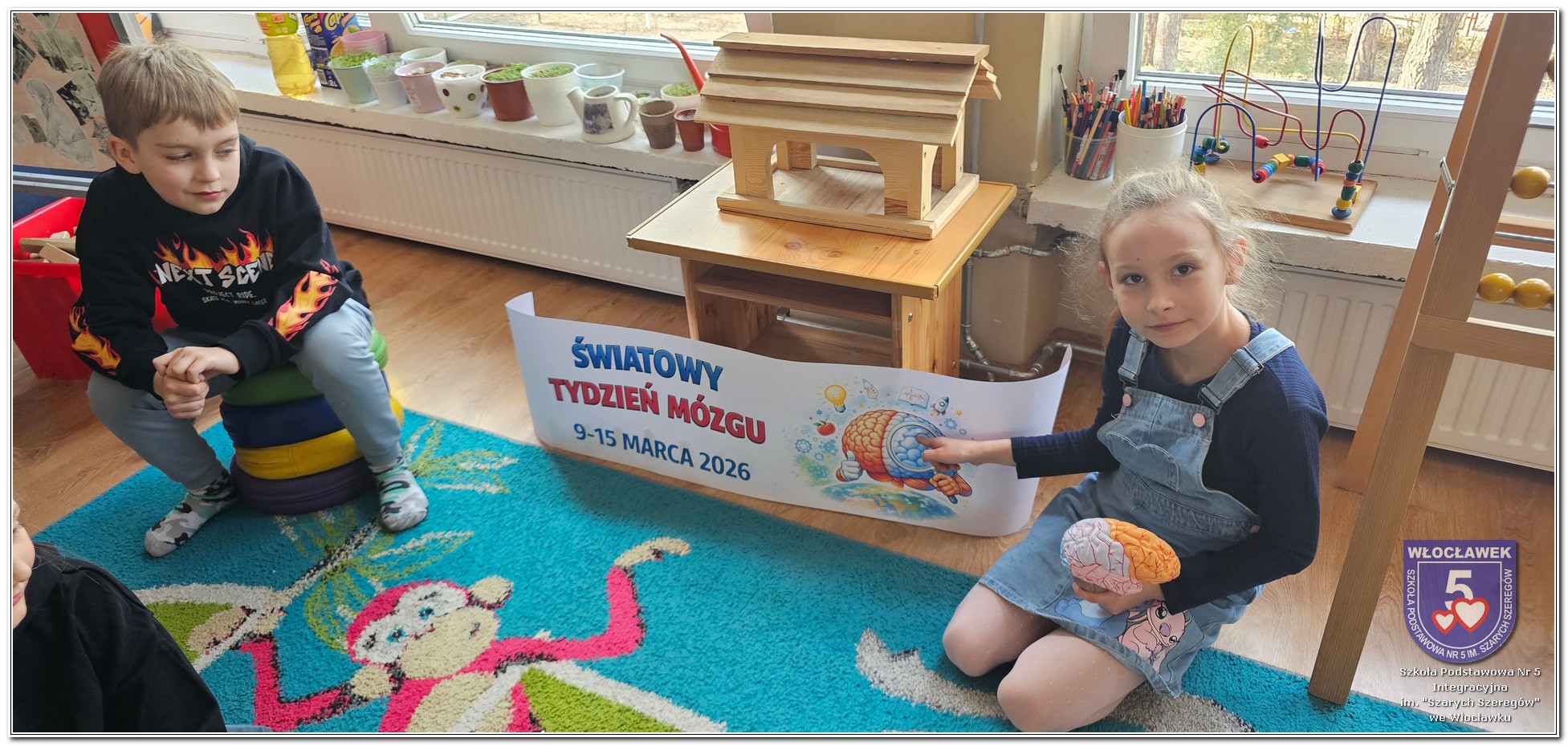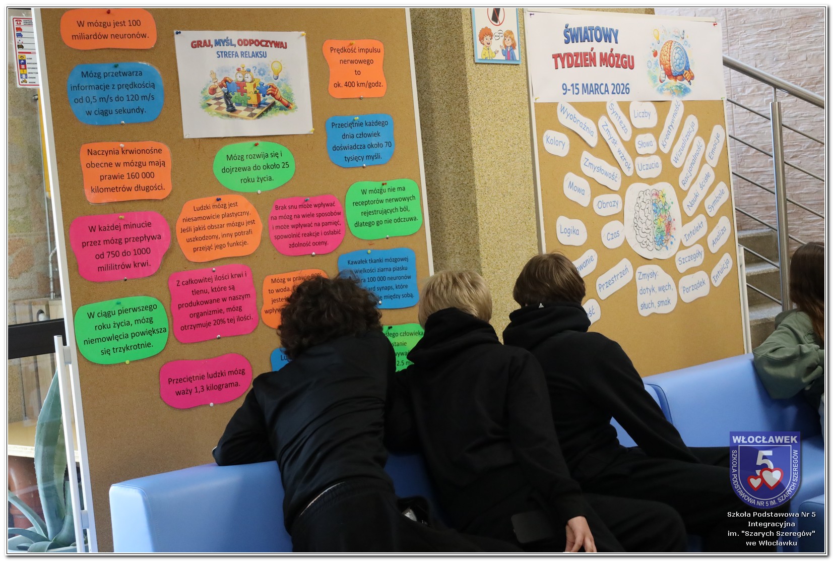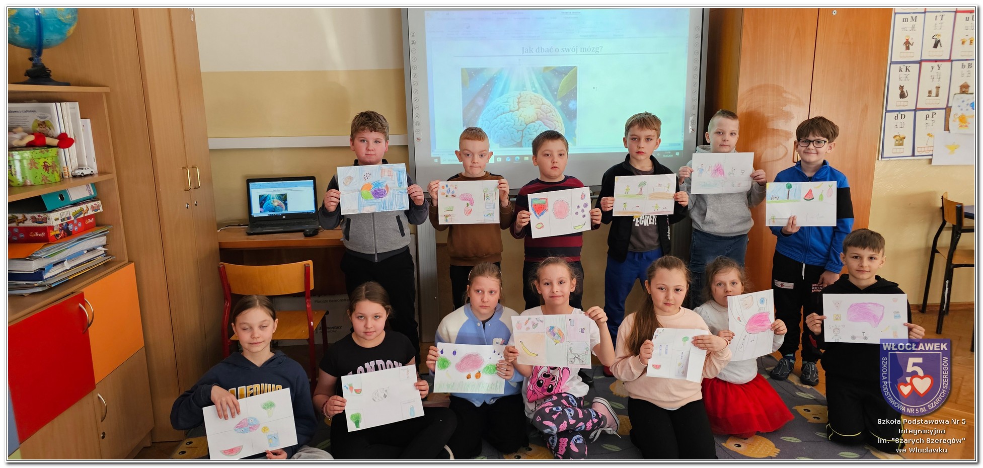 W dniach 9 - 13 marca 2026 r. w naszej placówce odbyły się zajęcia w ramach Światowego Tygodnia Mózgu, których celem było przybliżenie uczestnikom roli mózgu w codziennym funkcjonowaniu człowieka oraz promowanie zdrowego stylu życia sprzyjającego pracy mózgu. W trakcie wydarzenia zorganizowano kilka różnorodnych aktywności. Pierwszym z nich było wykonanie pracy plastycznej ph. "Mózg - centrum dowodzenia człowieka". Uczniowie wykonywali kreatywne prace przedstawiające mózg jako najważniejszy organ sterujący naszym ciałem. Dzięki temu mogli lepiej poznać jego funkcje, a jednocześnie rozwijać wyobraźnię i zdolności manualne. Zorganizowano również zajęcia taneczne ph. „Roztańcz swój mózg”. Podczas wspólnego tańca z p. Elizą Wieczorek uczniowie mieli okazję połączyć ruch z dobrą zabawą. Aktywność fizyczna sprzyja dotlenieniu organizmu i poprawia pracę mózgu, dlatego zajęcia cieszyły się dużym zainteresowaniem i wprowadziły wszystkich w bardzo dobry nastrój. Następnie zorganizowano „Graj, myśl, odpoczywaj” – strefę relaksu, w której uczniowie mogli rozwijać koncentrację i logiczne myślenie poprzez różnego rodzaju gry planszowe, łamigłówki oraz ćwiczenia umysłowe. Była to także przestrzeń do wyciszenia i odpoczynku. Ostatnim elementem wydarzenia była „Kuchnia dla geniuszy. Dieta i styl życia”. Podczas tych zajęć, które przygotowała nasz szkolna Pielęgniarka p. Agnieszka Jasińska, uczniowie klas 4a i 4b dowiedzieli się, jak ważna dla prawidłowej pracy mózgu jest zdrowa dieta, odpowiednia ilość snu oraz aktywność fizyczna. Rozmawiano o produktach wspierających pracę mózgu oraz o codziennych nawykach sprzyjających koncentracji i dobrej pamięci. Zorganizowane działania pozwoliły uczestnikom w ciekawy i aktywny sposób poszerzyć wiedzę o funkcjonowaniu mózgu oraz o tym, jak dbać o jego kondycję każdego dnia. Wydarzenie przebiegło w przyjaznej atmosferze i spotkało się z dużym zainteresowaniem. Koordynatorami akcji były: w klasach 1-3 p. Małgorzata Chaberska i p. Małgorzata Koprowska, w klasach 4-8 p. Kamila Szkołuda z p. Monika Witek -Czachorowską.