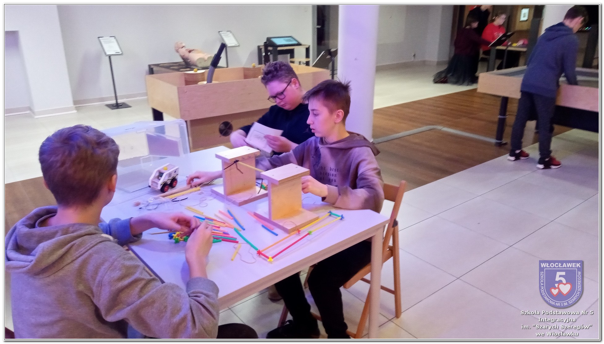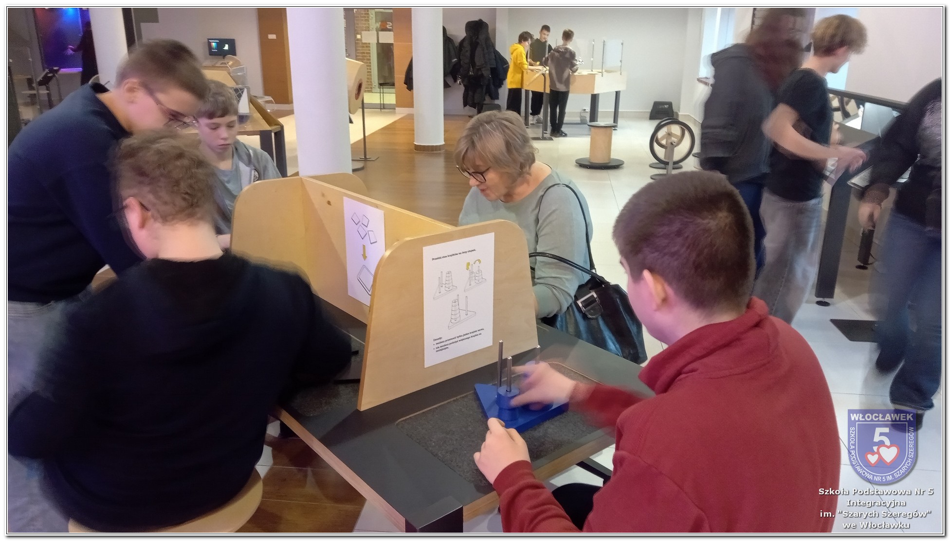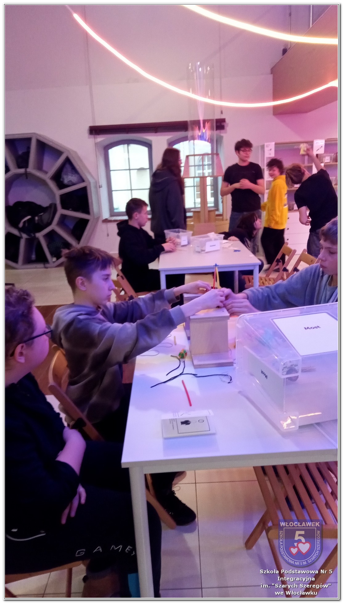 W dniu 5 grudnia 2025 r. uczniowie klas 7a i 8b uczestniczyli w wyjściu do Strefy Odkrywania, Wyobraźni i Aktywności - SOWA, znajdującej się w Centrum Kultury „Browar B” we Włocławku. Wyjazd miał charakter edukacyjny i był okazją do aktywnego poznawania świata nauki oraz rozwijania umiejętności eksperymentowania. Podczas pobytu w SOWIE uczniowie korzystali z interaktywnych stanowisk, pozwalających samodzielnie badać różnorodne zjawiska fizyczne, matematyczne i przyrodnicze. Uczestnicy mogli m.in. sprawdzić, jak działają mechanizmy optyczne, poznać zasady równowagi, przyjrzeć się iluzjom, a także wykonywać zadania wymagające logicznego myślenia i współpracy. Każde stanowisko zachęcało do zadawania pytań, poszukiwania rozwiązań i sprawdzania, jak teoria przekłada się na praktykę. Wyjście było świetną okazją do połączenia nauki z zabawą. Uczniowie aktywnie angażowali się w doświadczenia, chętnie współpracowali w grupach i dzielili się swoimi spostrzeżeniami. Atmosfera była pełna ciekawości, radości i wzajemnego wsparcia, a przestrzeń SOWY sprzyjała odkrywaniu nowych zainteresowań. Po zakończonych zajęciach wszyscy wrócili do szkoły z uśmiechami i nowymi inspiracjami do dalszego poznawania świata nauki. Wyjście z pewnością pozostanie miłym wspomnieniem oraz wartościowym elementem szkolnej edukacji.
