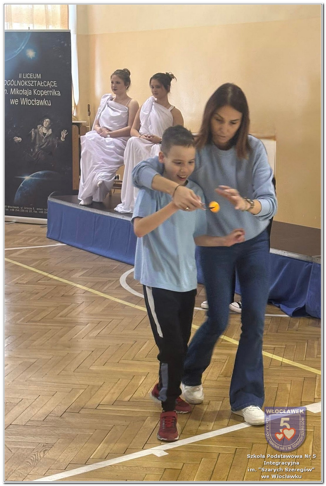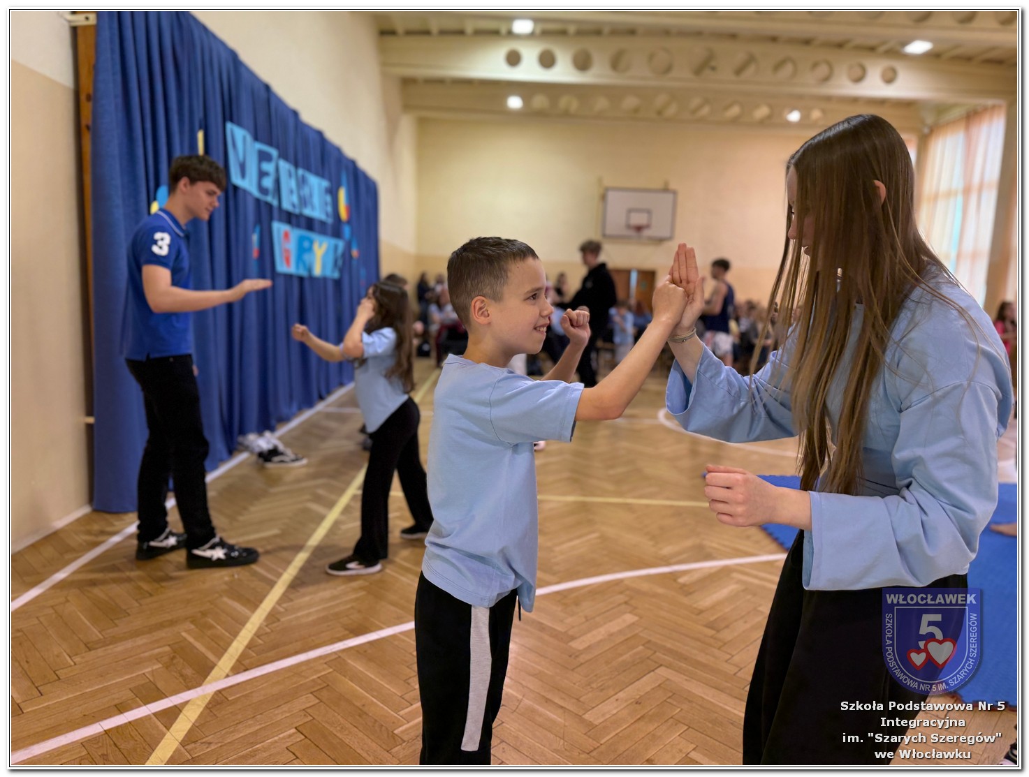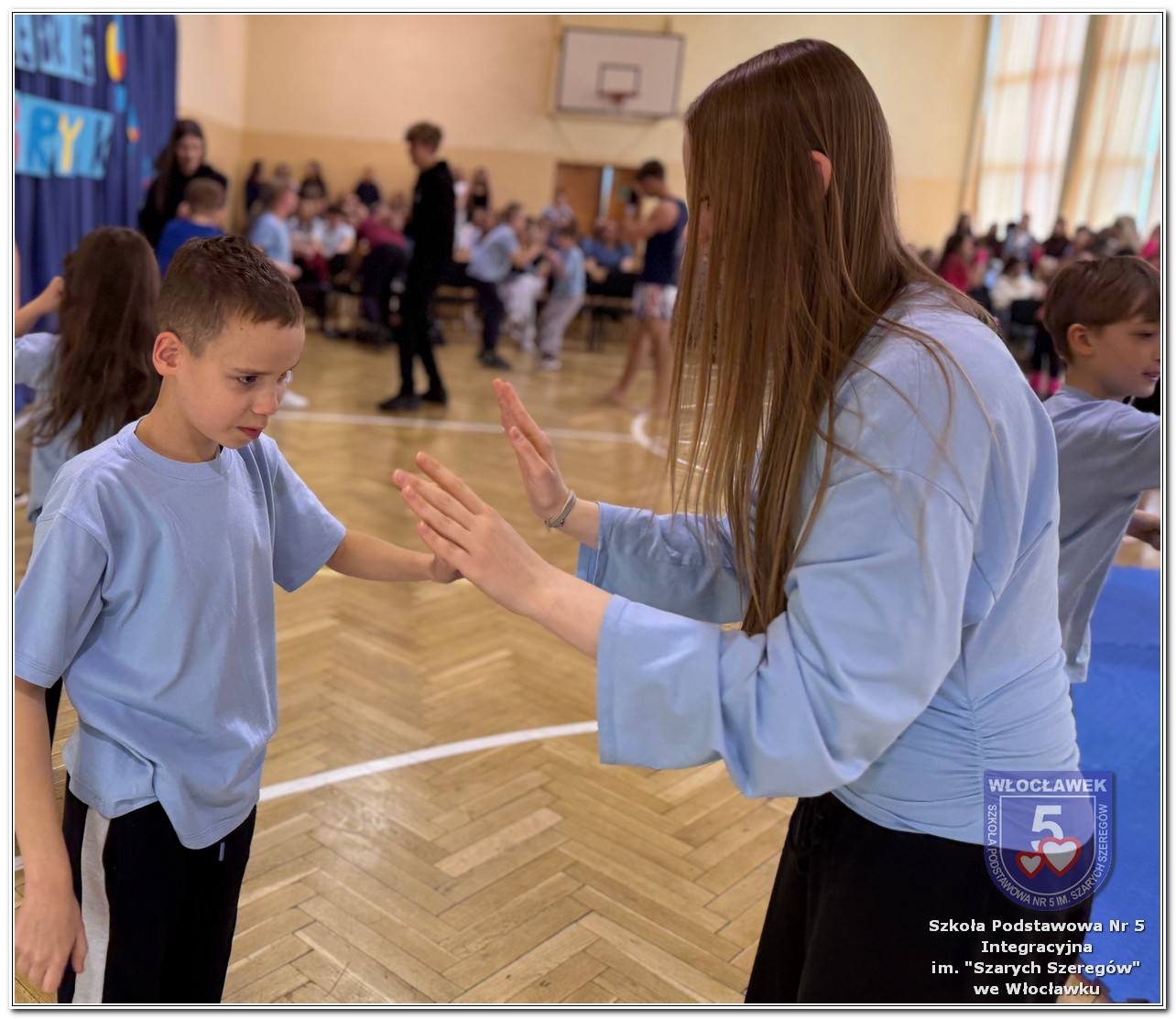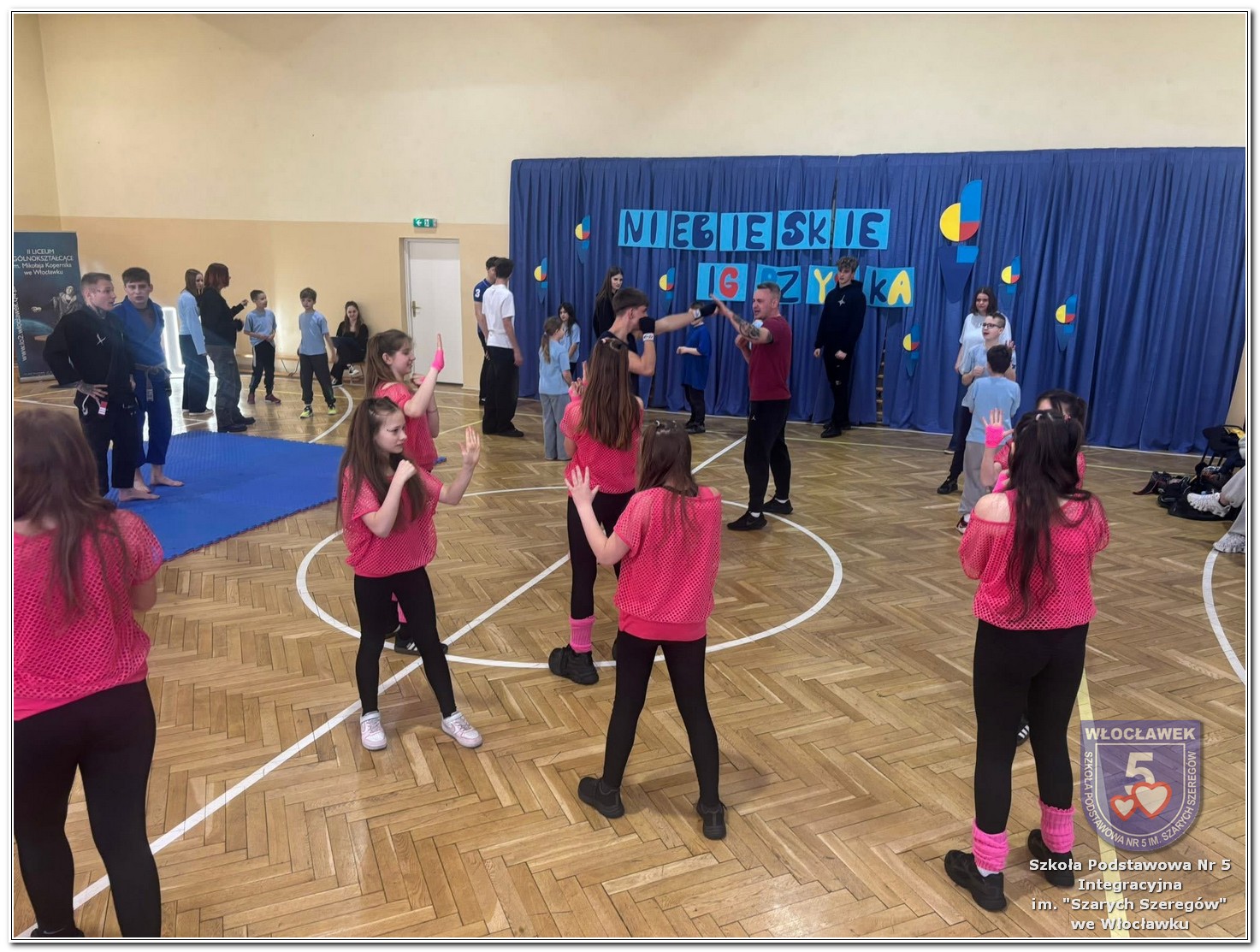 Uczniowie Szkoły Podstawowej nr 5 Integracyjnej im. Szarych Szeregów we Włocławku wzięli udział w wyjątkowym wydarzeniu – „Niebieskich Igrzyskach”, które odbyły się w II Liceum Ogólnokształcącym im. Mikołaja Kopernika we Włocławku. Impreza miała charakter sportowo-integracyjny i przebiegała w atmosferze radości, otwartości oraz wzajemnego wsparcia. Podczas wydarzenia nasi uczniowie aktywnie uczestniczyli w przygotowanych konkurencjach sportowych, wykazując się dużym zaangażowaniem, współpracą oraz pozytywną energią. Niebieskie Igrzyska były nie tylko okazją do wspólnej zabawy, ale przede wszystkim do budowania świadomości, empatii i akceptacji wobec osób w spektrum autyzmu. W ramach wydarzenia odbyły się również warsztaty z zakresu kickboxingu oraz jiu-jitsu, podczas których chętni uczniowie mieli możliwość aktywnego udziału w zajęciach na macie. W trakcie igrzysk zaprezentował się również zespół taneczny naszej szkoły, którego trenerem jest pani Marta Banasiak.