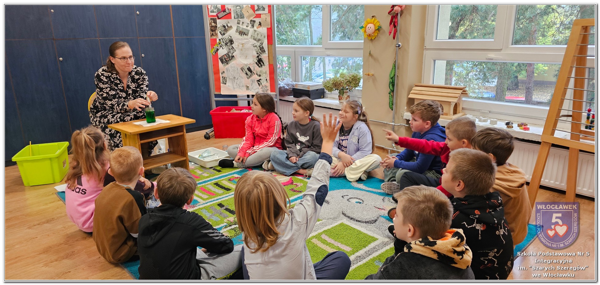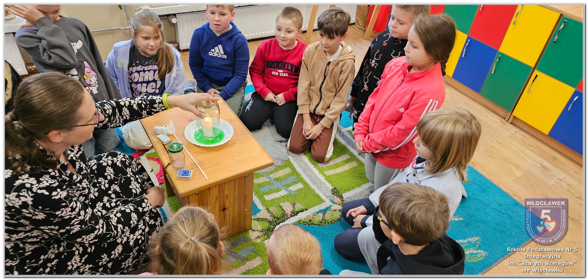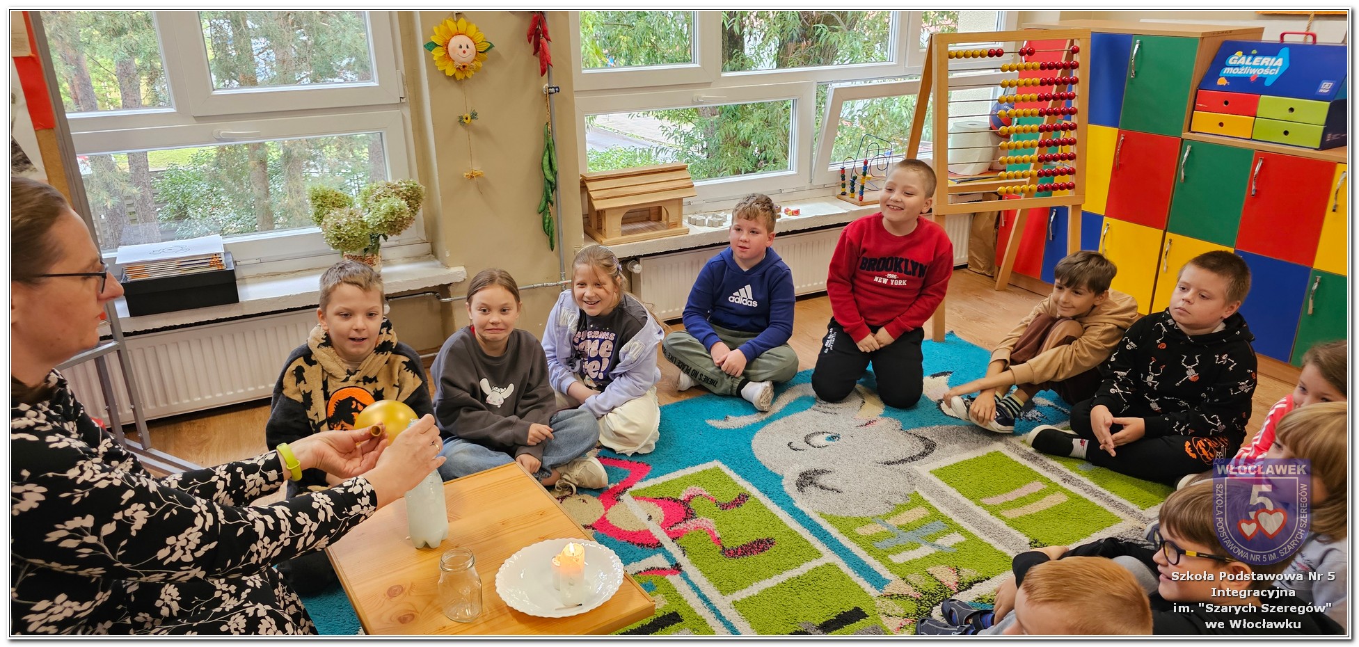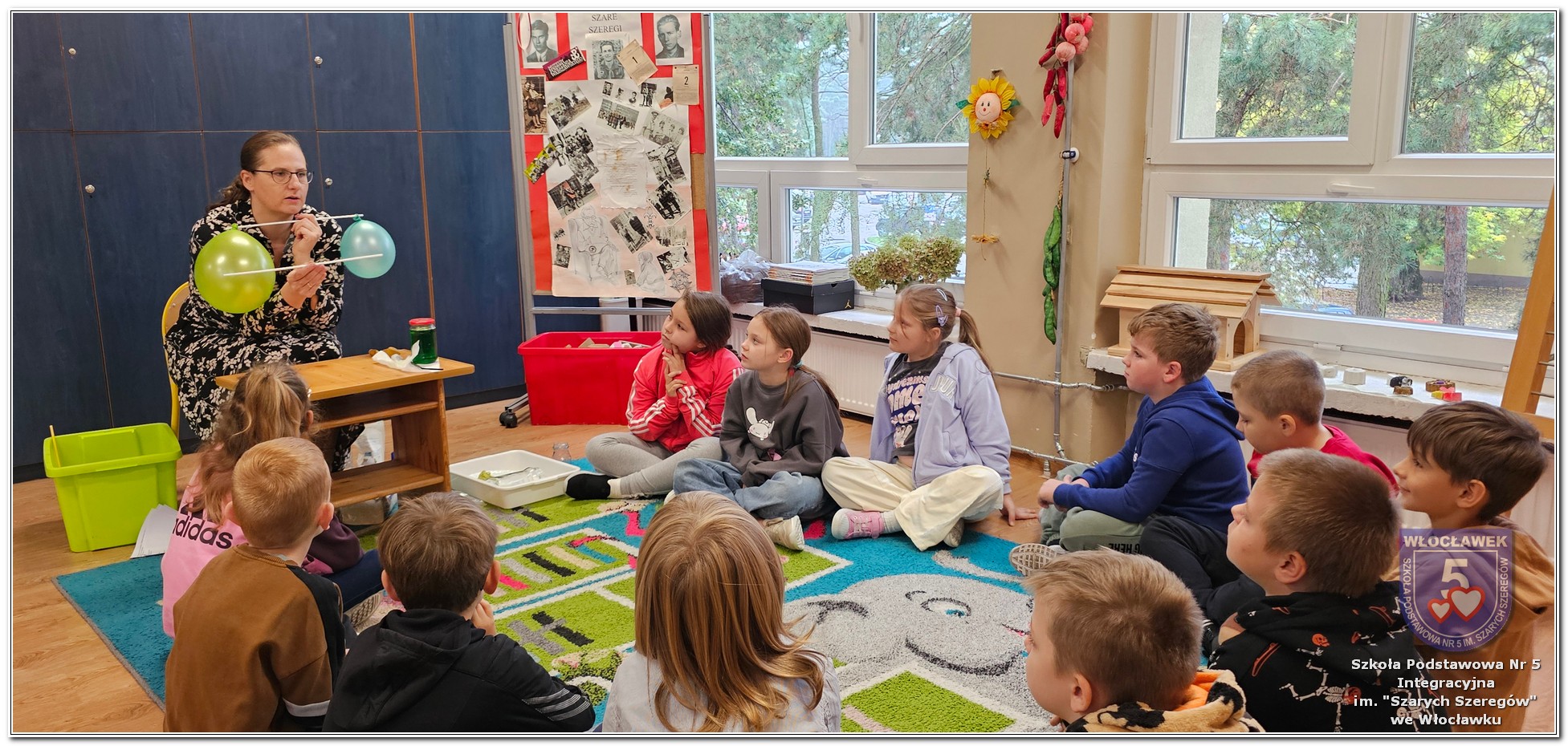 W klasie 2b odbyły się kolejne zajęcia z Panią Joanną Fydryszewską z Włocławskiego Centrum Edukacji Ekologicznej. Dzięki jej ciekawym zajęciom z projektu „Wiedza, człowiek i emocje. Sprawdzamy czym oddychamy.”, przepełnionym eksperymentami i zagadkami, powietrze nas otaczające ma już przed uczniami coraz mniej tajemnic. Pytania: z czego składa się powietrze, czy potrzebny jest nam tlen i wiele innych, to już błahostka dla drugoklasistów. Dziękujemy.