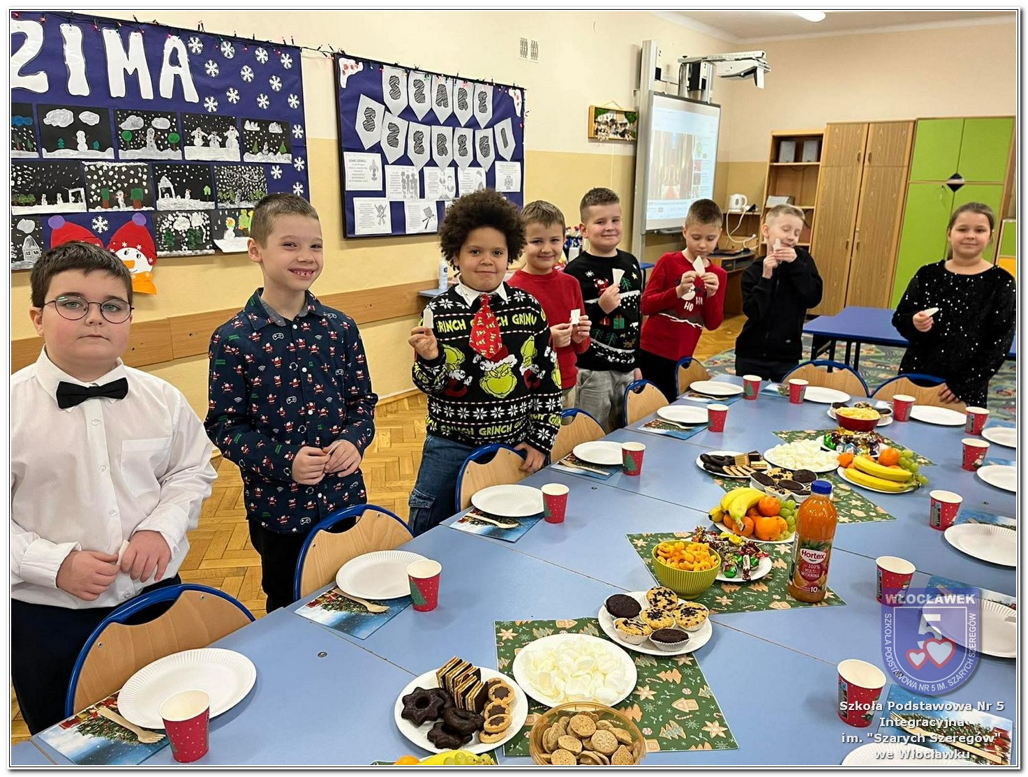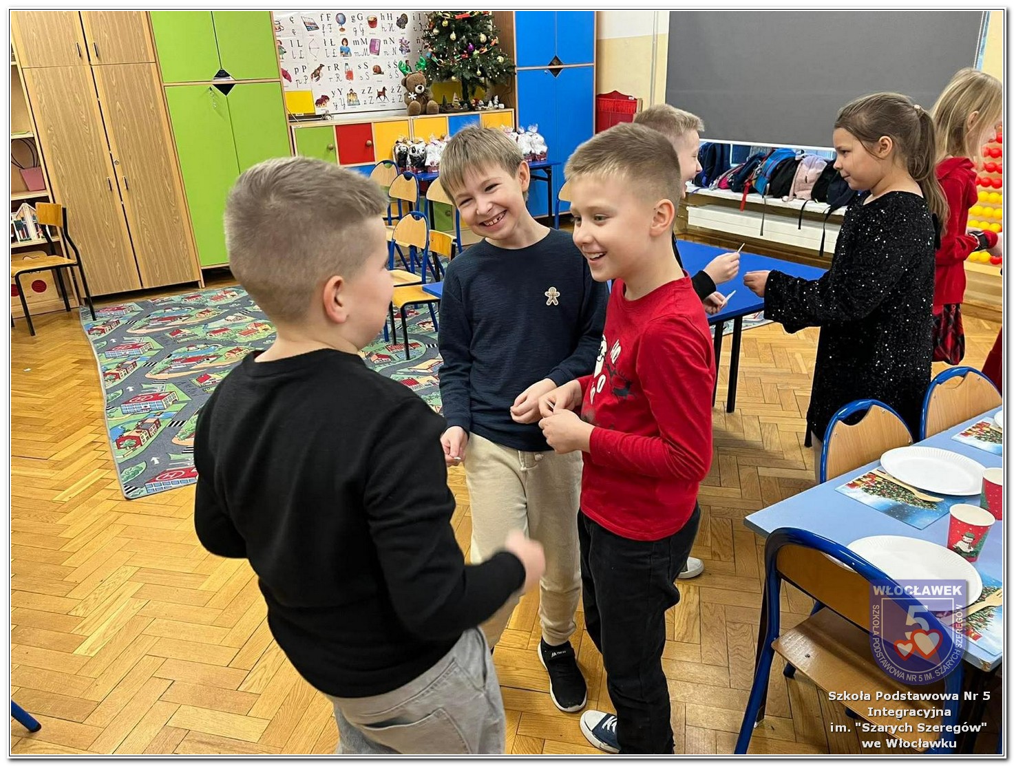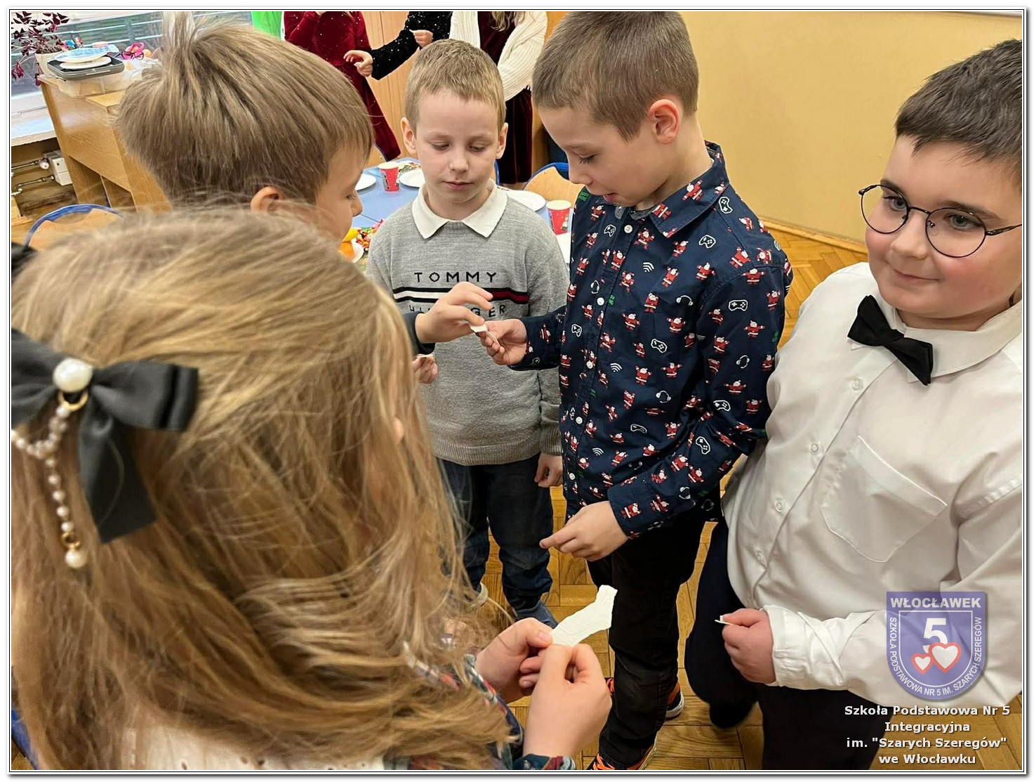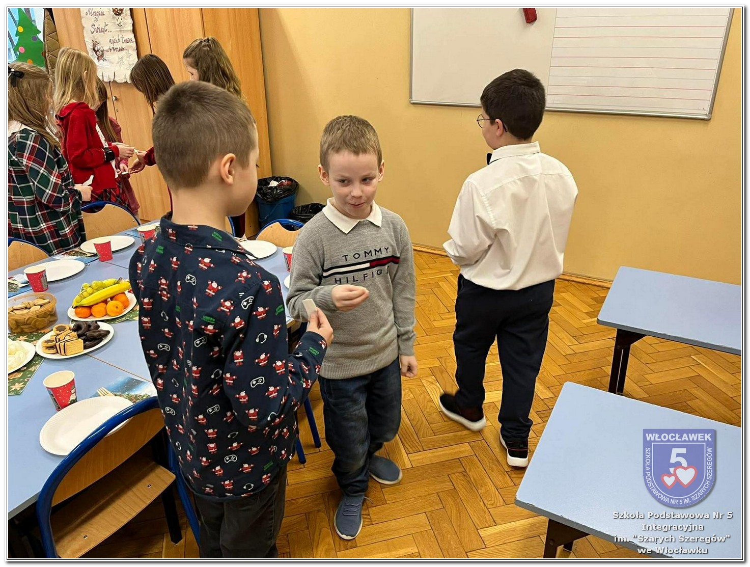 W klasie 2a odbyło się świąteczne spotkanie, podczas którego uczniowie wspólnie spędzili przedświąteczny czas. Dzieci opowiadały o swoich świątecznych tradycjach, śpiewały kolędy i brały udział w krótkich zabawach integracyjnych. Nie zabrakło również drobnych upominków i wielu uśmiechów, które stworzyły wyjątkowy, ciepły nastrój.