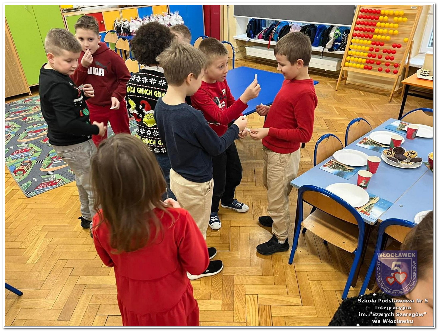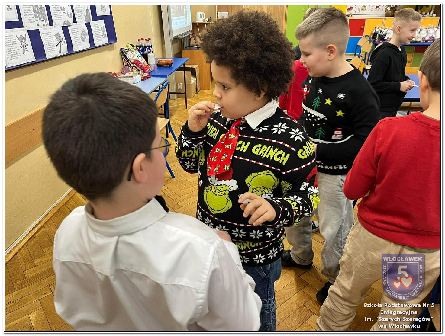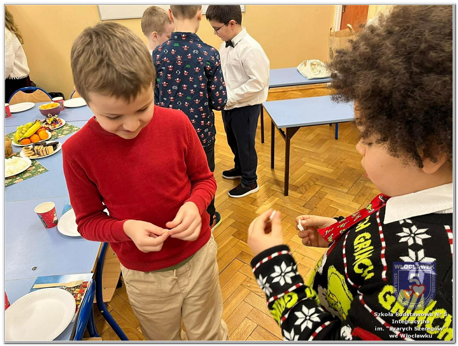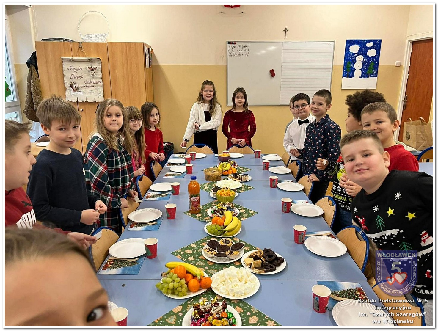 W klasie 2a odbyło się świąteczne spotkanie, podczas którego uczniowie wspólnie spędzili przedświąteczny czas. Dzieci opowiadały o swoich świątecznych tradycjach, śpiewały kolędy i brały udział w krótkich zabawach integracyjnych. Nie zabrakło również drobnych upominków i wielu uśmiechów, które stworzyły wyjątkowy, ciepły nastrój.