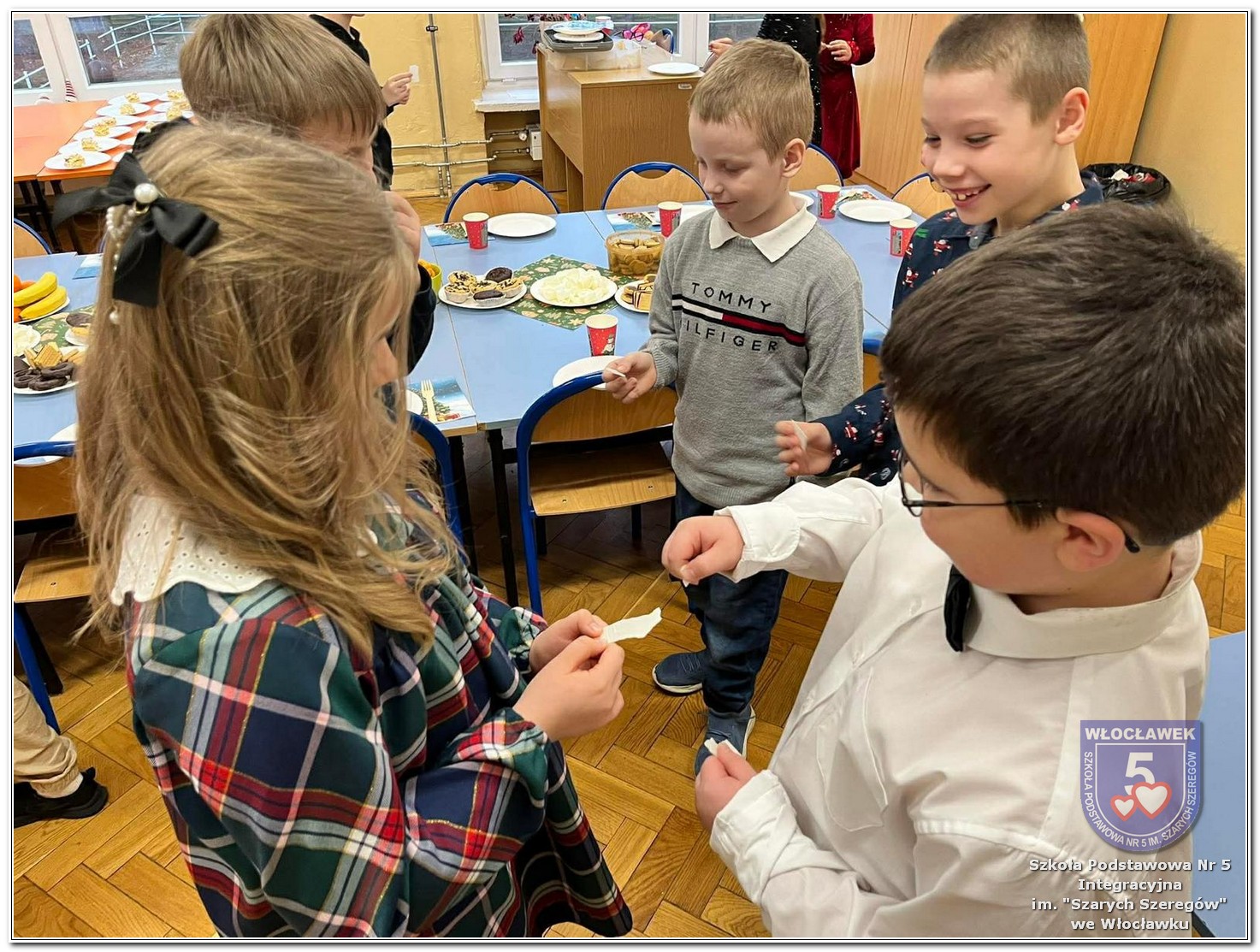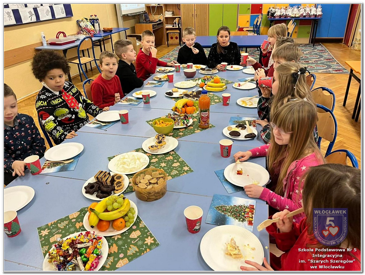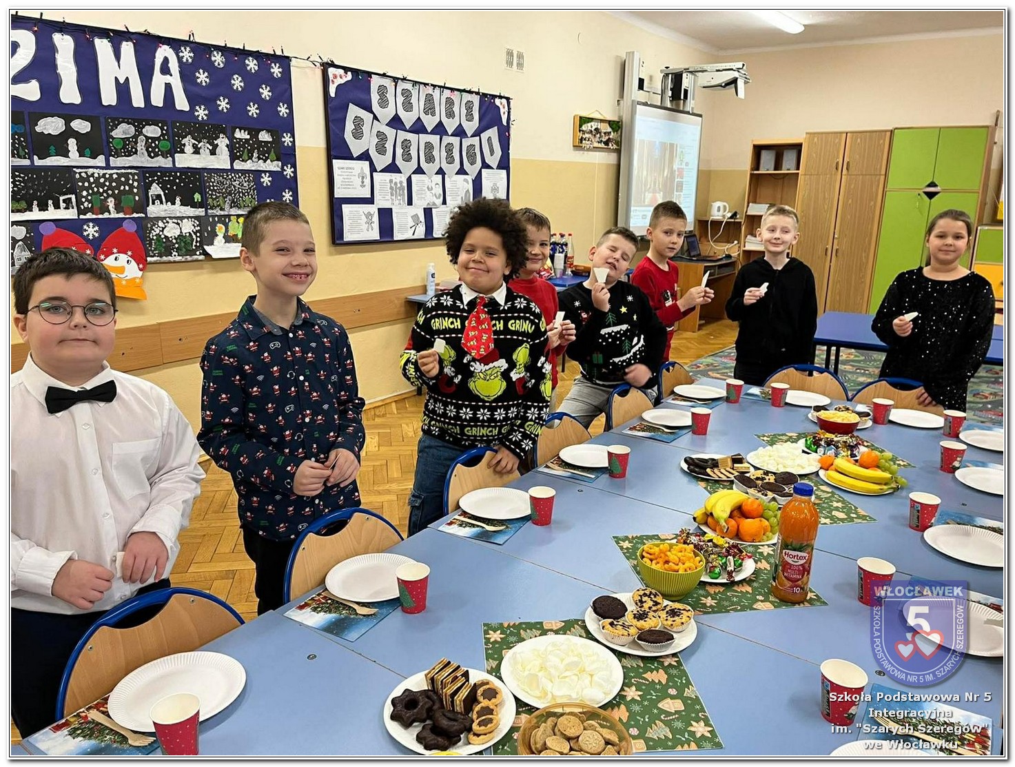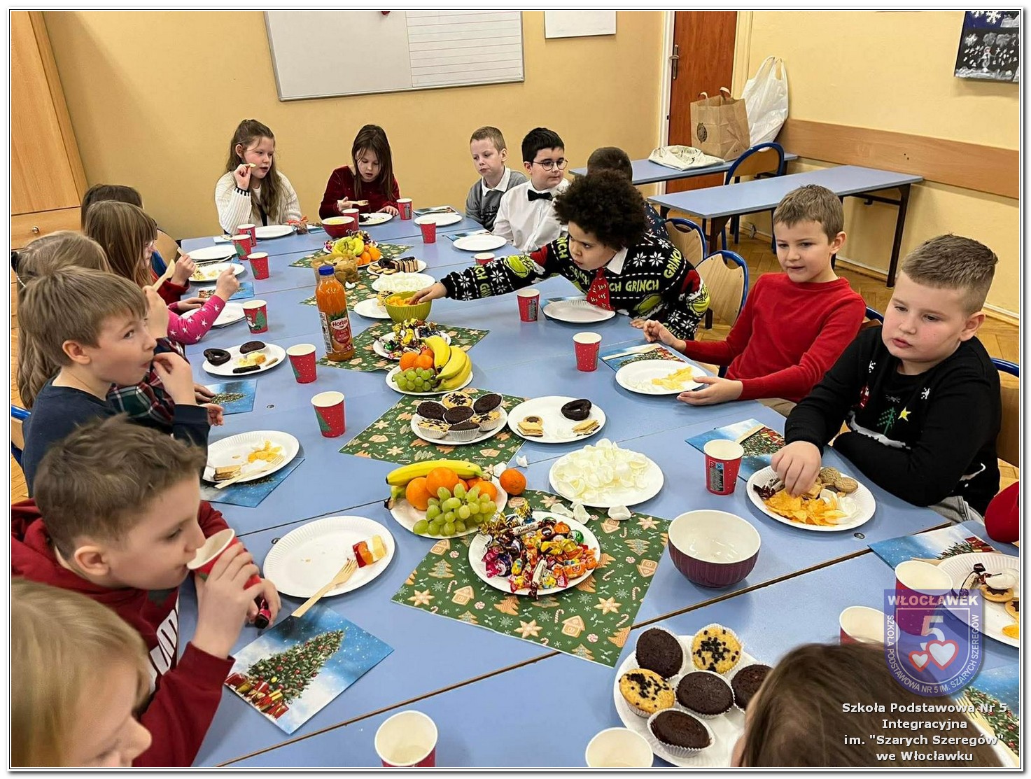 W klasie 2a odbyło się świąteczne spotkanie, podczas którego uczniowie wspólnie spędzili przedświąteczny czas. Dzieci opowiadały o swoich świątecznych tradycjach, śpiewały kolędy i brały udział w krótkich zabawach integracyjnych. Nie zabrakło również drobnych upominków i wielu uśmiechów, które stworzyły wyjątkowy, ciepły nastrój.